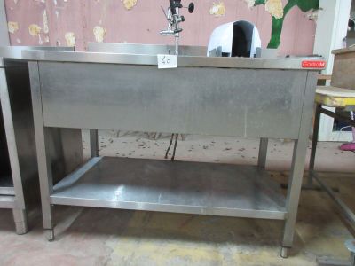 1 table en inox avec dosseret et 1 entretoise (90x150x70cm) …