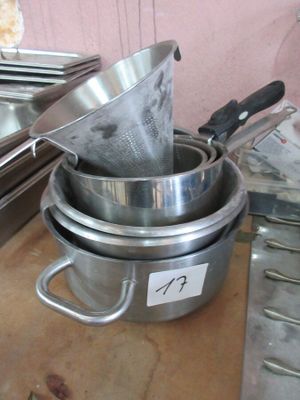 1 rondeau en aluminium, 3 casseroles en inox, 1 chinois , 2 …