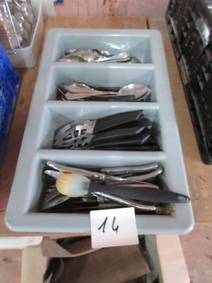 1 range-couvert en plastique gris de 4 compartiments avec cu…