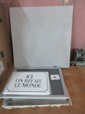 1 lot de cadres en inox ; 1 plaque de rue humoristique ; 1 p…