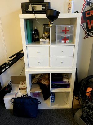 Lot de mobilier comprenant : - 2 étagères - 2 tables