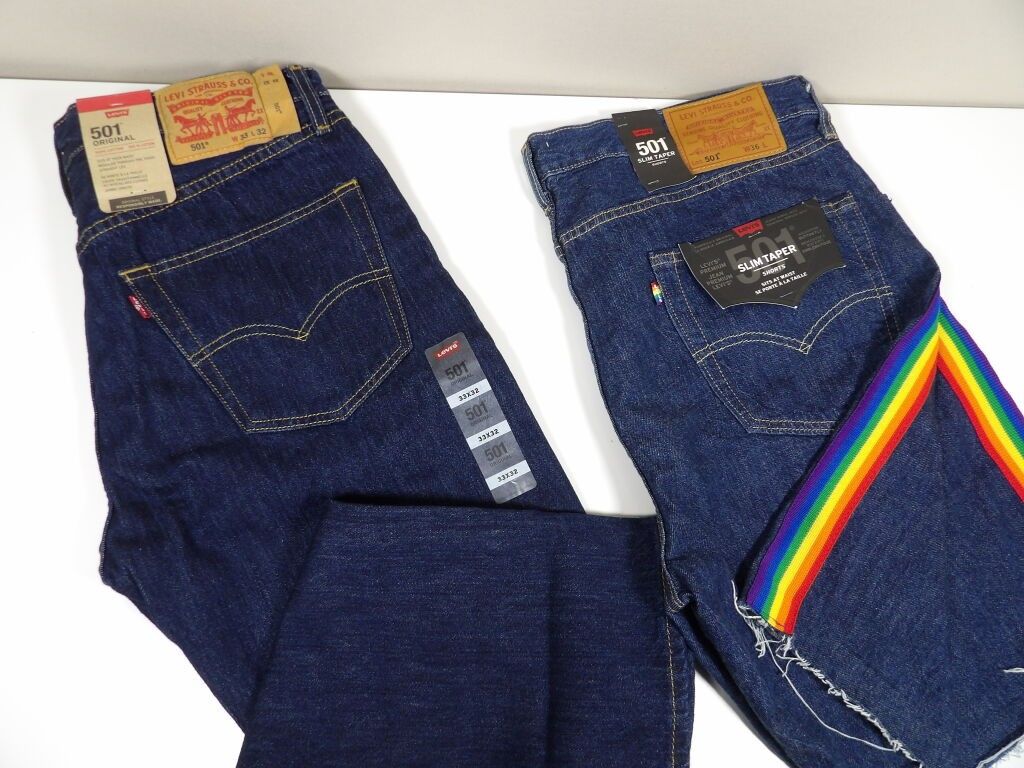 MODE HOMME 2PCS : LEVI'S JEAN 501 ORIGNINAL 100% COTON Taille W33 L32 SHORT 501 SLIM TAPER Taille W36 NEUF