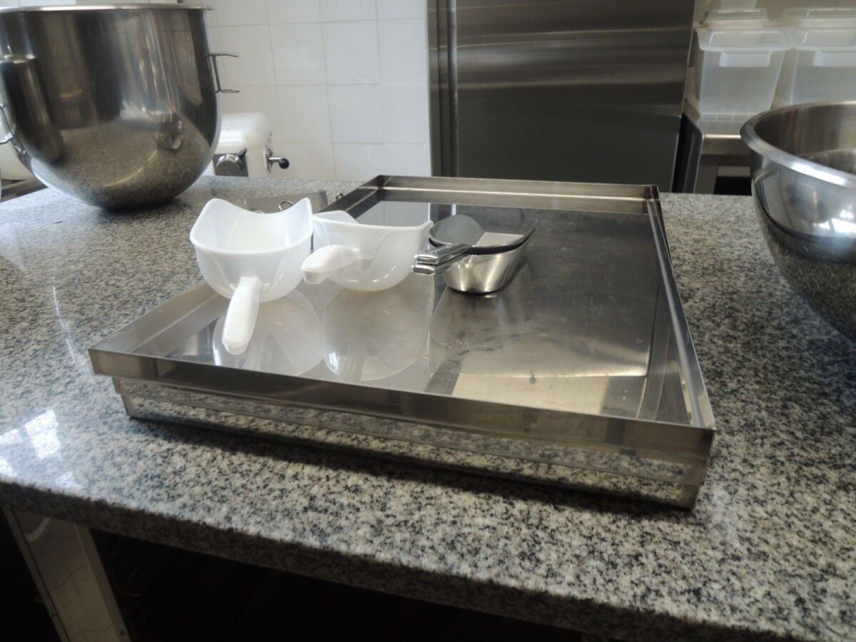 3 plaques à gâteau rectangulaire inox, 2 pelles inox