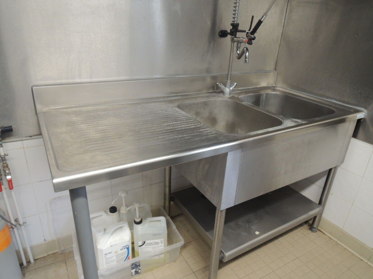 1 plonge inox à 2 bacs adossé inox avec 1 douchette