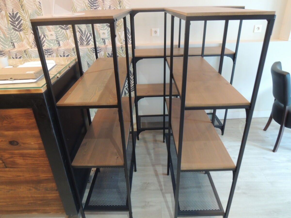 4 rayonnages à 2 éléments 4 niveaux en métal noir/bois
