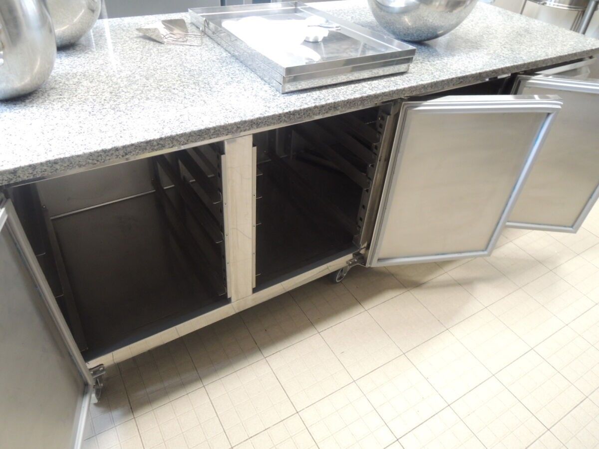 1 tour réfrigérée inox mobile à 4 portes dessus granit AFI COLLIN LUCY AA38PPMDM3-GC n°683824921032844, groupe logé