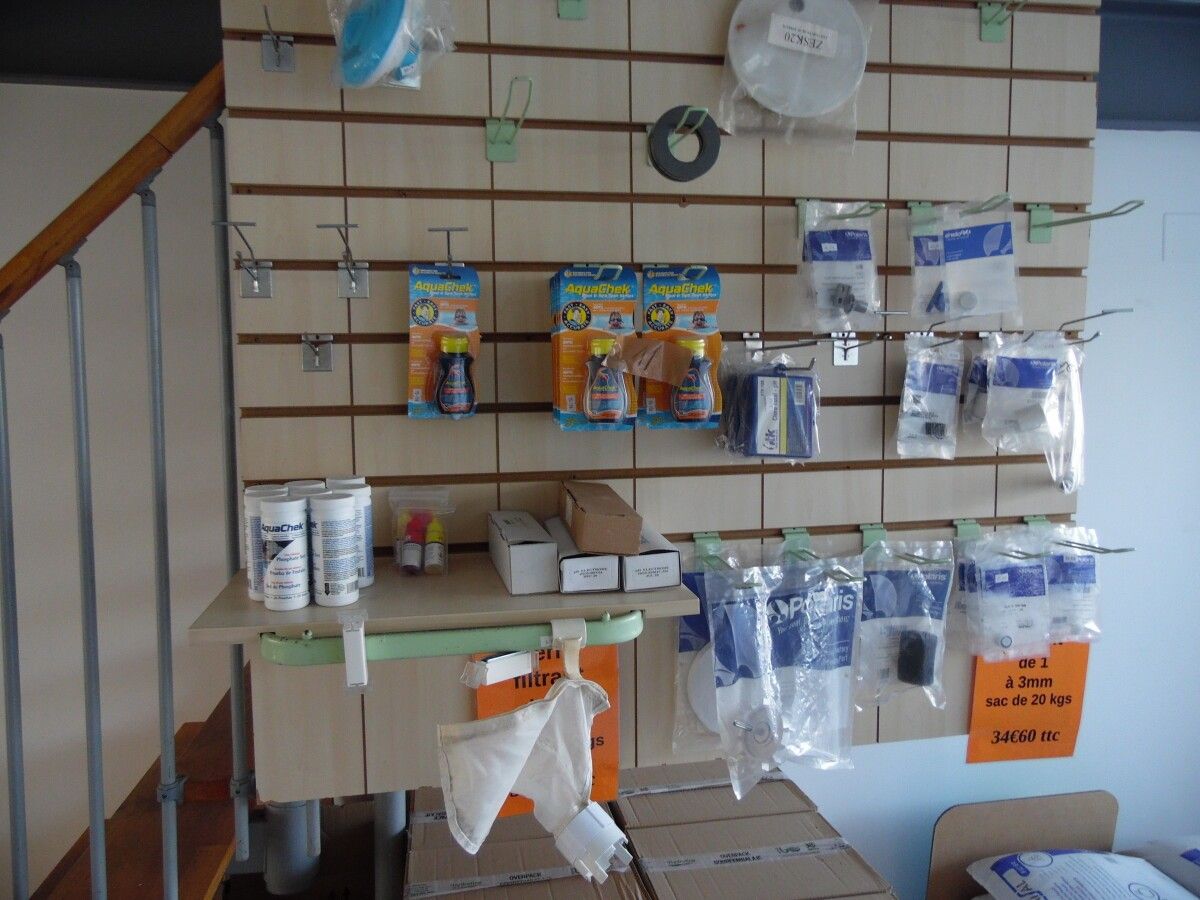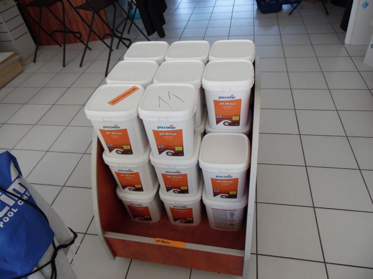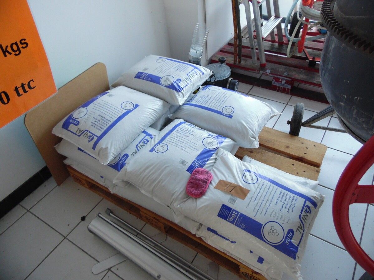 Stock: 1 palette de sel granulé piscine, 1 palette de produi…