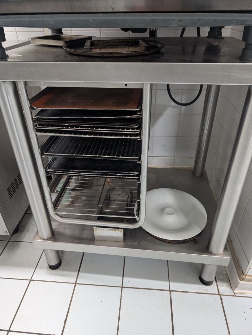 FOUR à air pulsé inox UNOX CHEF TOP type XVC 505 EPL de 2013 sur piètement avec porte-plaques, plaques et grilles