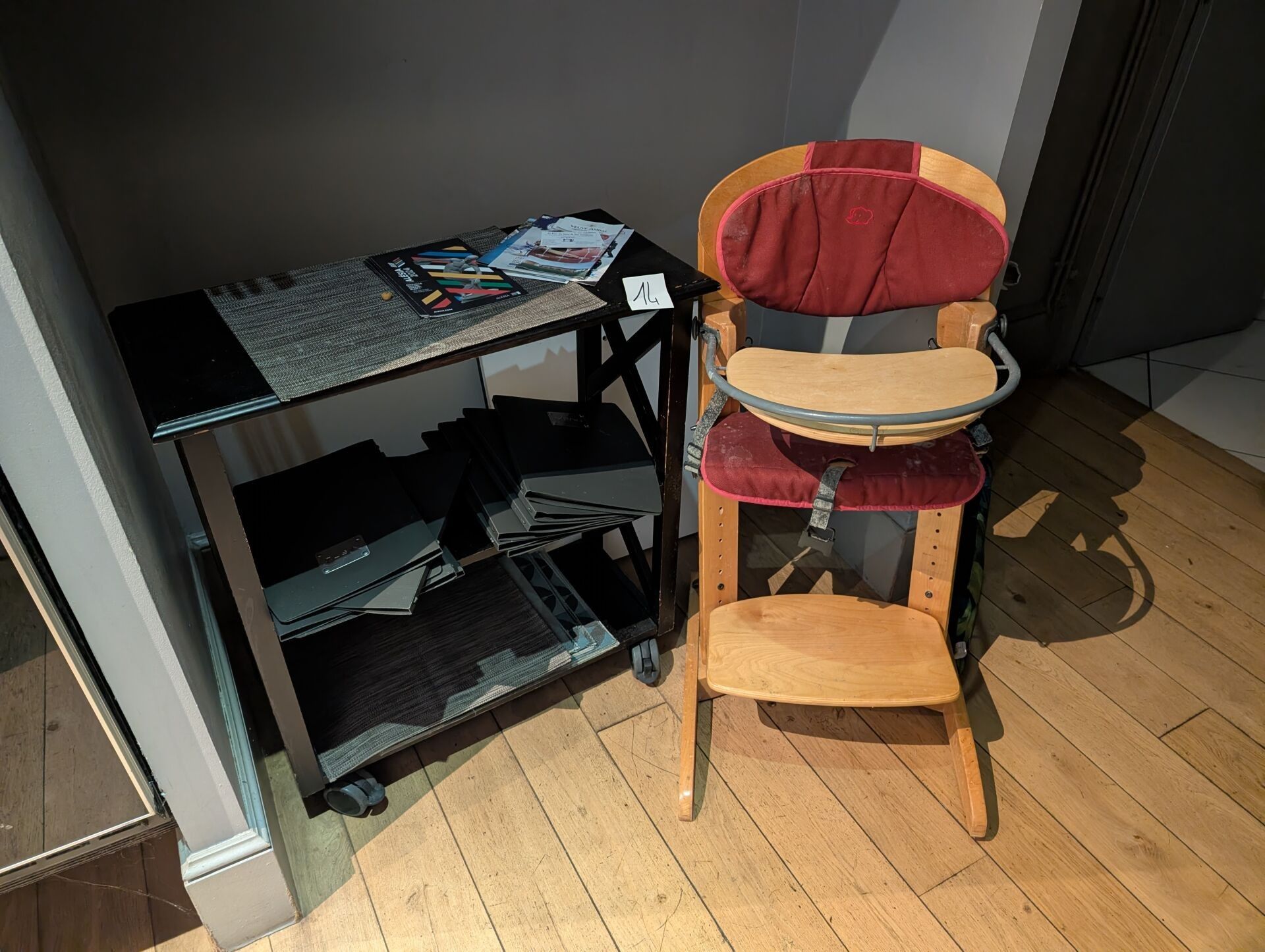 2 CHAISES résine tressée, étagère roulante et chaise d'enfan…