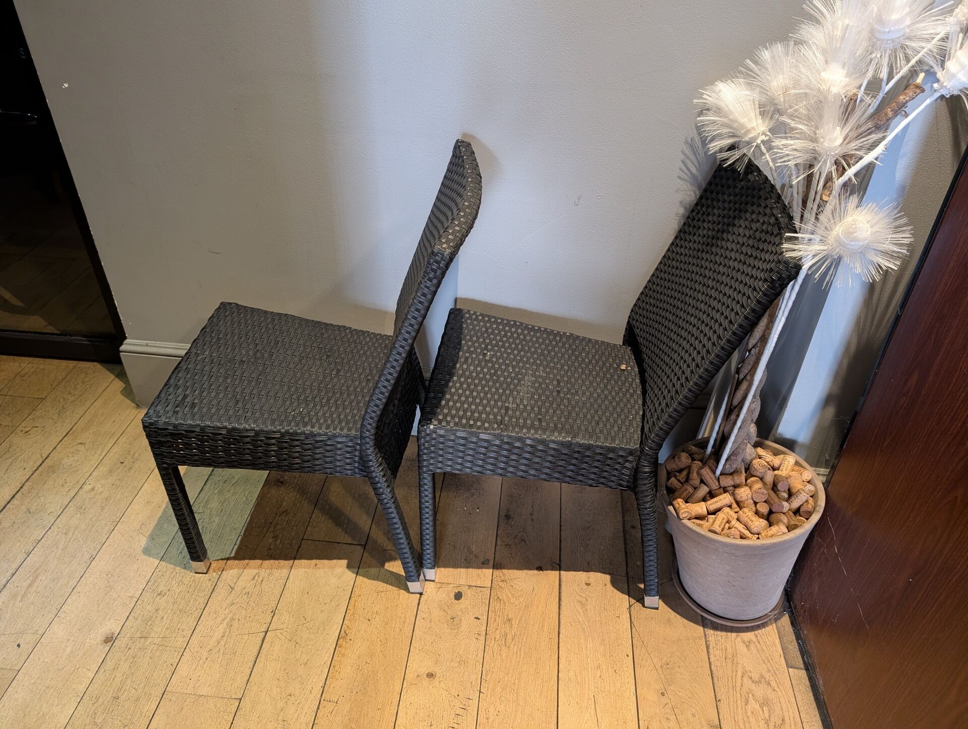 2 CHAISES résine tressée, étagère roulante et chaise d'enfant