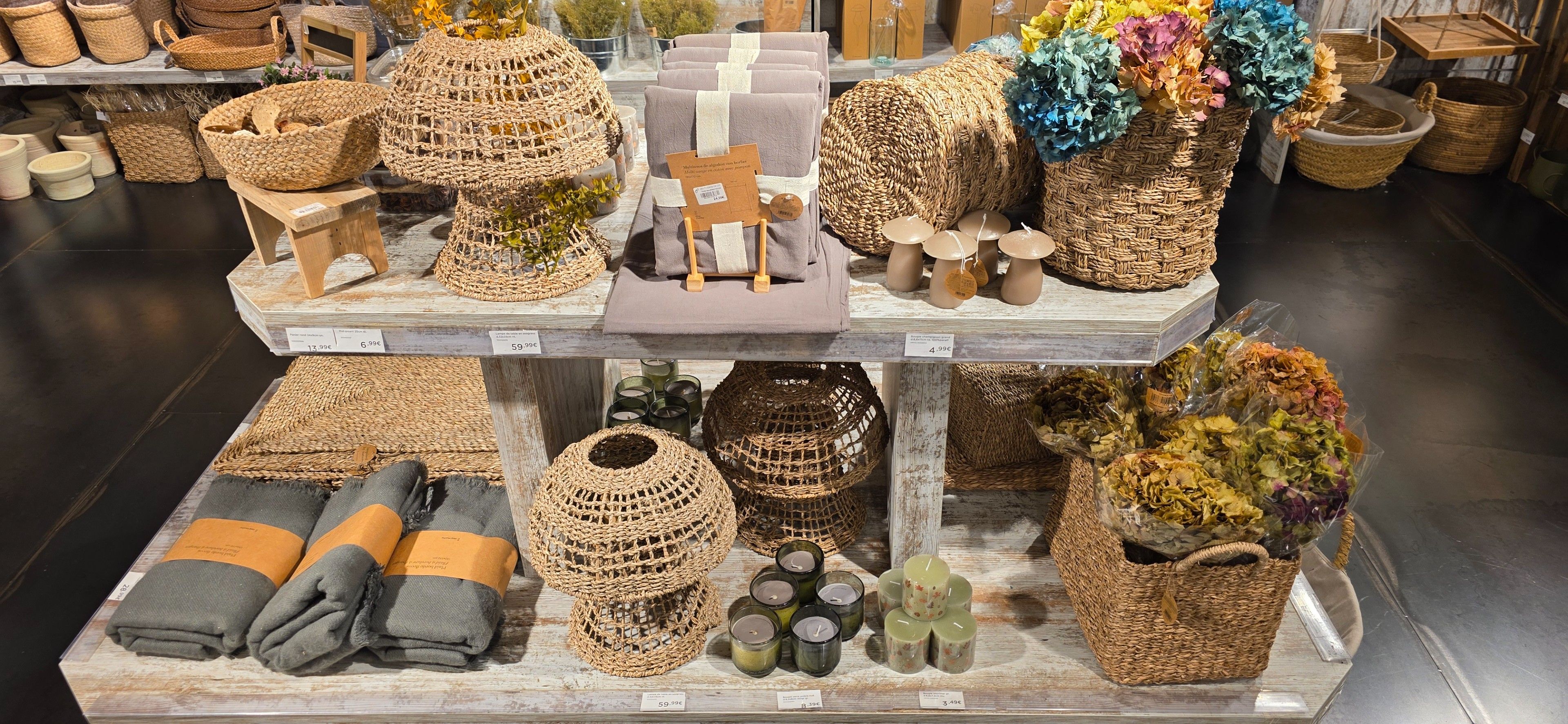 - LUMINAIRES, COUSSINS, CADRES, MIROIRS+G3 STATUETTES, FLEURS SECHEES, BOUGIES, GUIRLANDES LUMINEUSES, TAPIS, PAILLASSONS, SUSPENSIONS MURALES, FAUSSES PLANTES, LAMPES DE TABLE, CAISSES EN BOIS, RIDEAUX, PANIERS EN FIBRE VEGETALES AVEC ET SANS COUVERCLE...