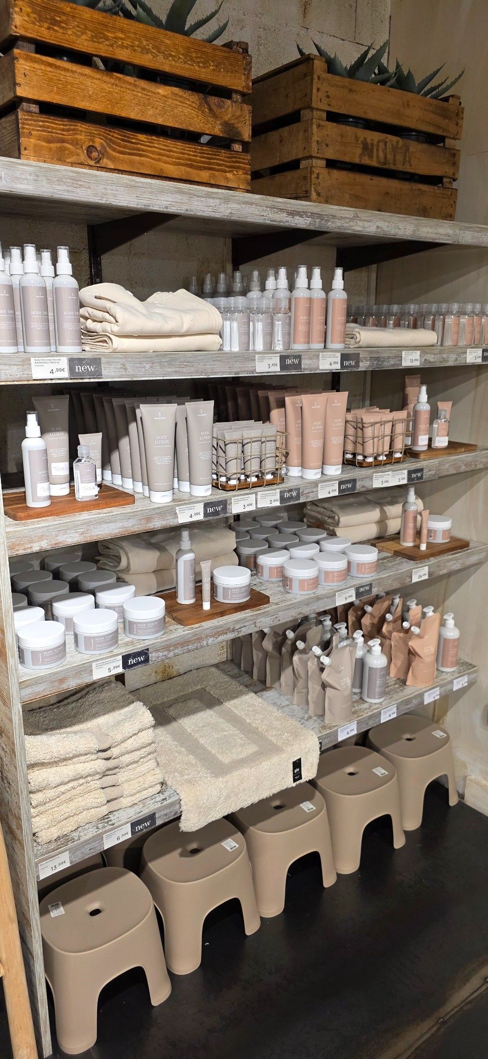 - SERVIETTES DE TOILETTES,PAREOS, TAPIS DE BAINS, PANIERS DE RANGEMENTS, PORTES SAVONS, PETITES POUBELLES, MARCHES PIEDS, CREME POUR LE CORPS, GOMMAGES, CREMES, SAVONS, BAUME A LEVRES,