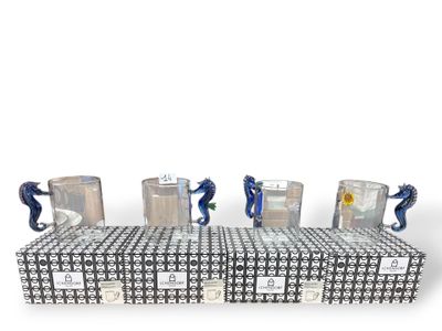 ICHENDORF Milano. lot de quatre tasses en verre hippocampes