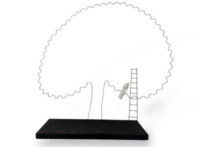 Laurent TREBOUT Objet décoratif sur bois en fil de fer "arbr…