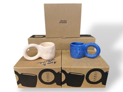 Audo, Lot de deux tasses en céramique noire ou rouge.