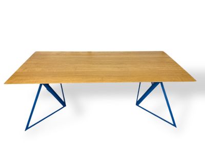 Treku. Table Aise Rectangulaire , pieds tréteaux en métal bl…