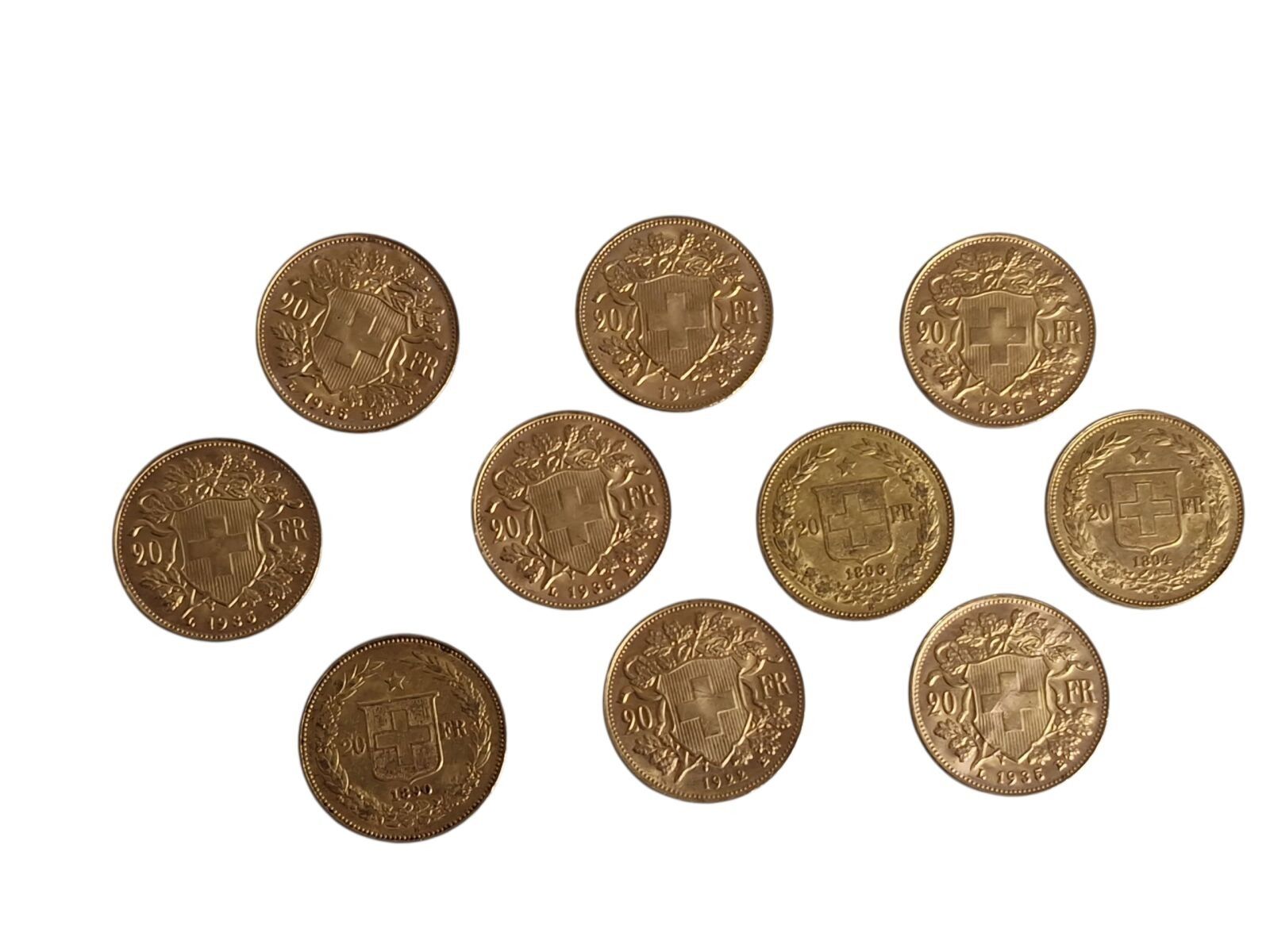 10 gold coins of 20 Swiss Francs TTB/Sup
