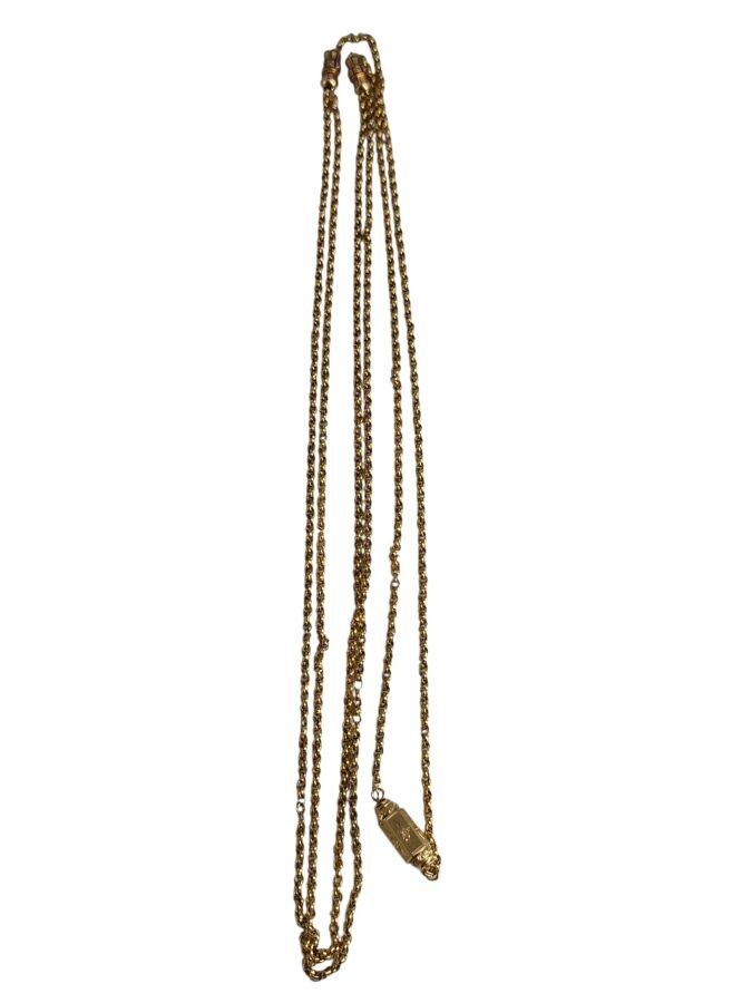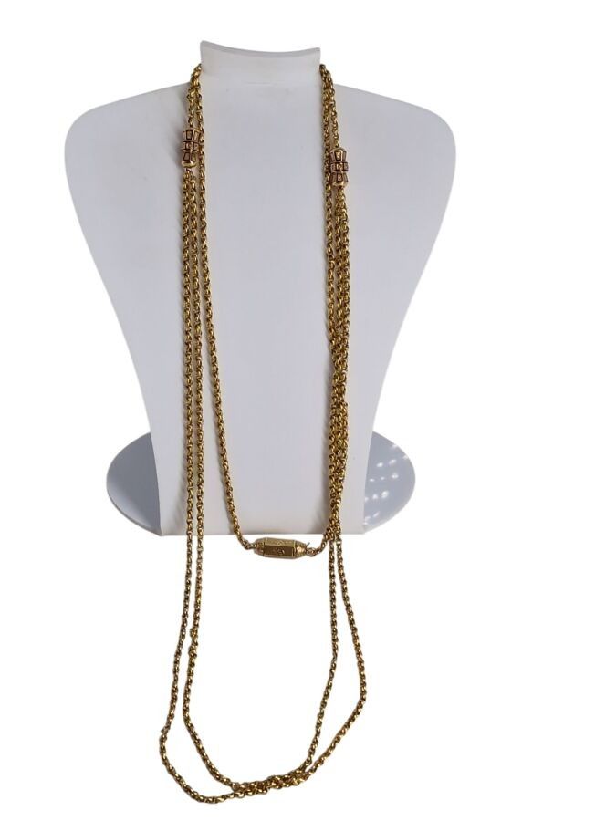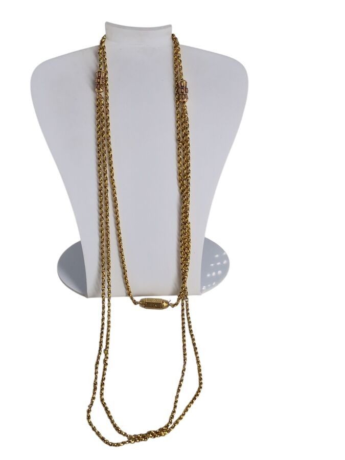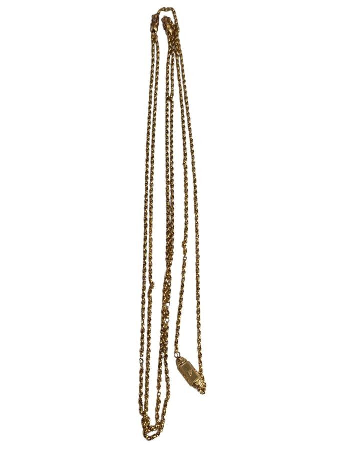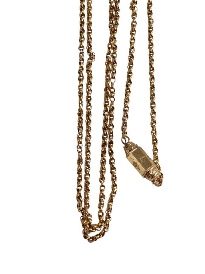 Premium Gold long necklace with "witch chain" links, barrel and two …