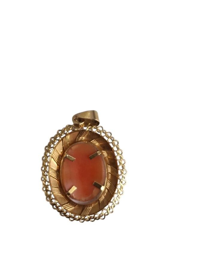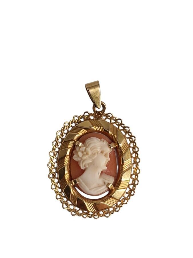 Gold pendant set with an oval cameo with a woman's profile. Weight : 2 gr