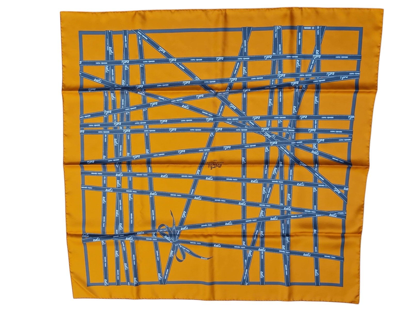 HERMES - Jean Louis Dumas Silk twill Bolduc scarf with orang…