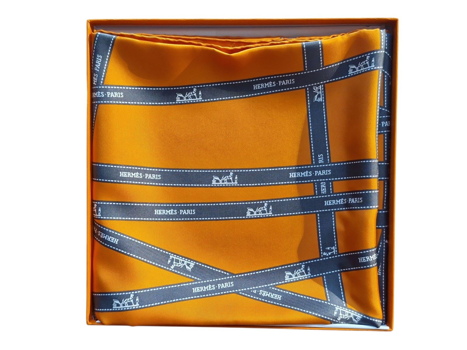 HERMES - Jean Louis Dumas Silk twill Bolduc scarf with orange background. With box.