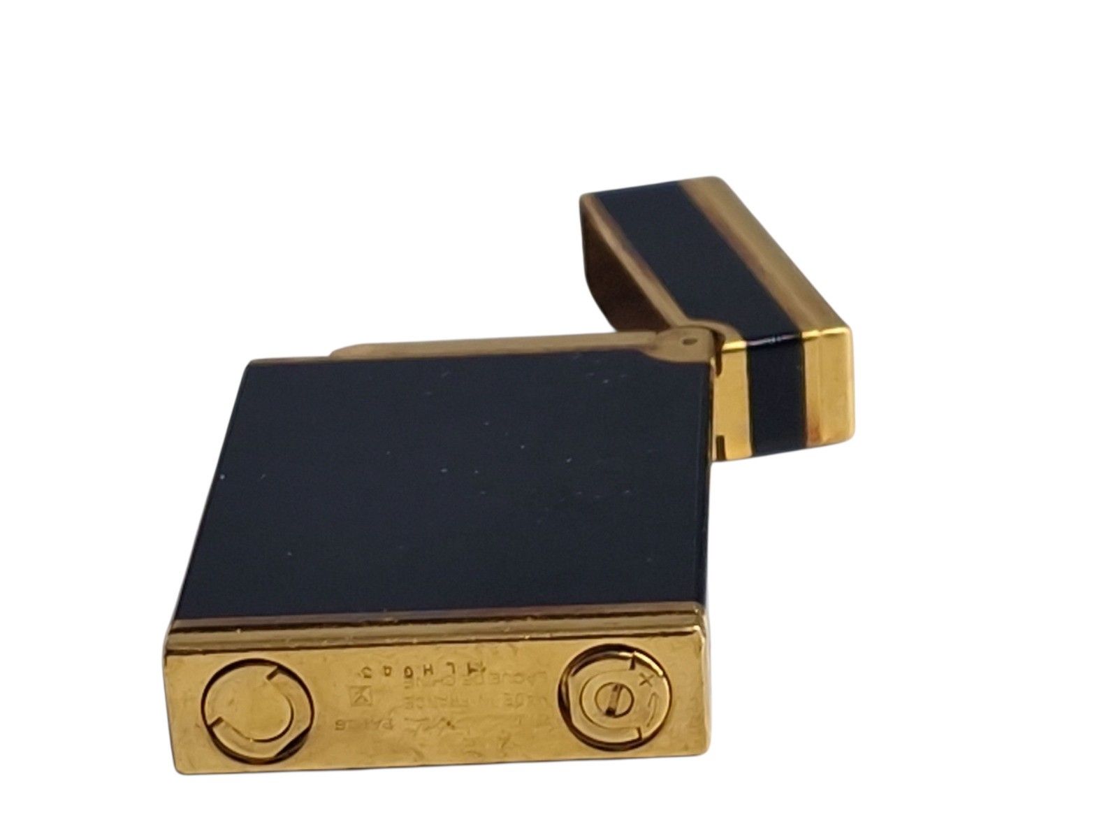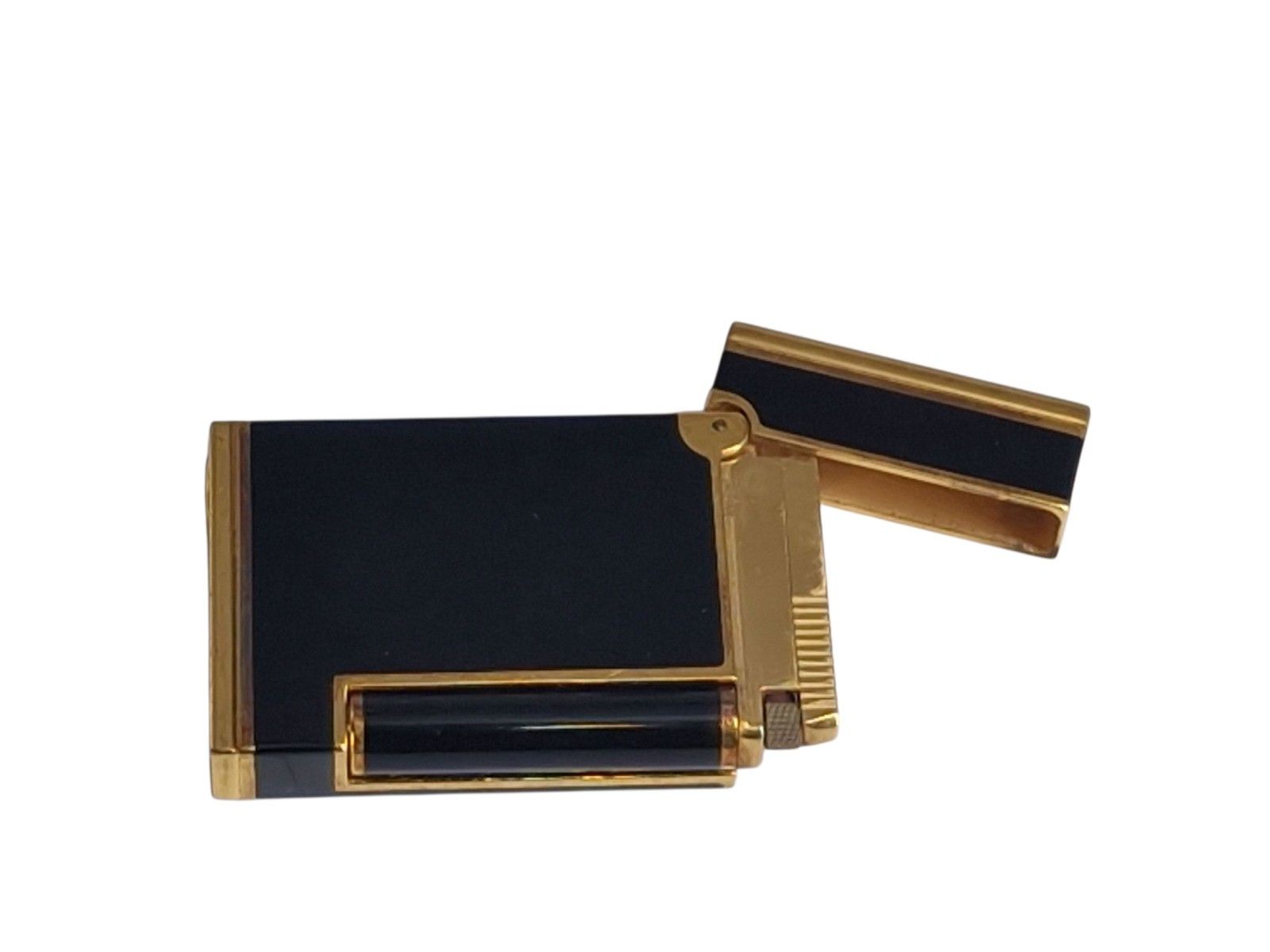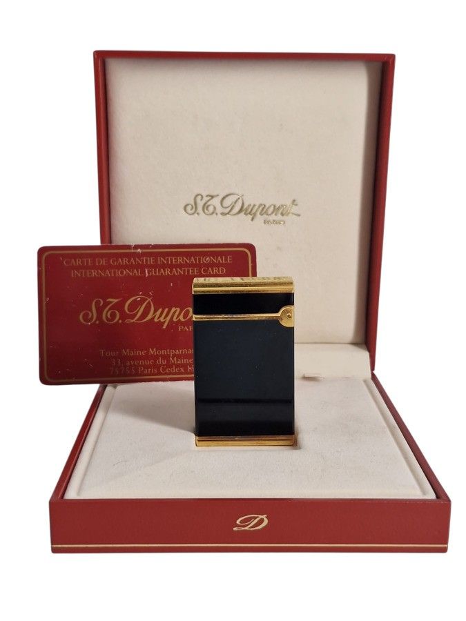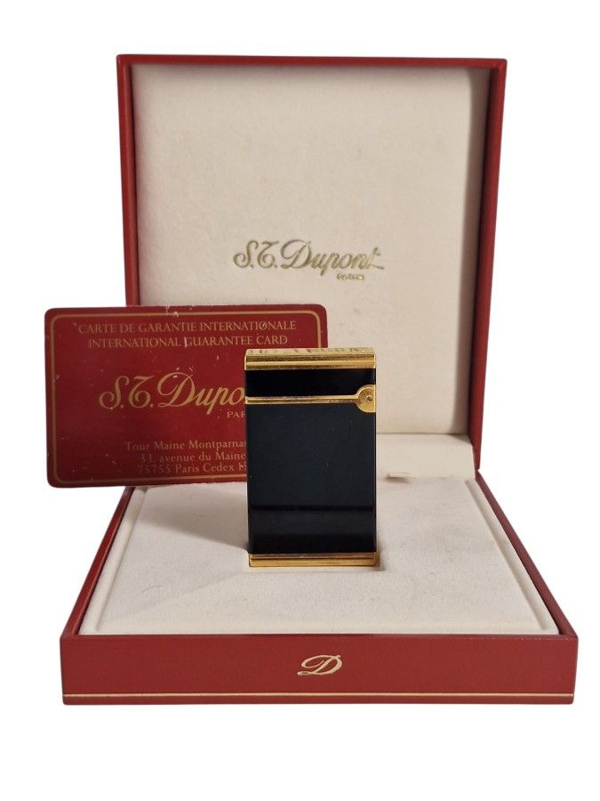 DUPONT Gilt brass and black Chinese lacquer lighter reference n°17544. with box and warranty card. (mark of use)