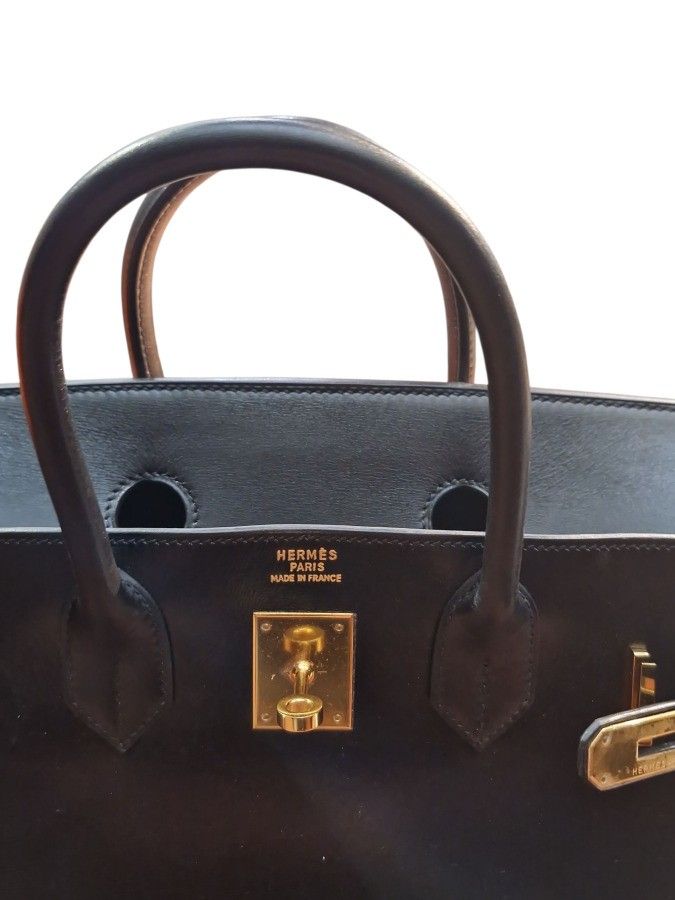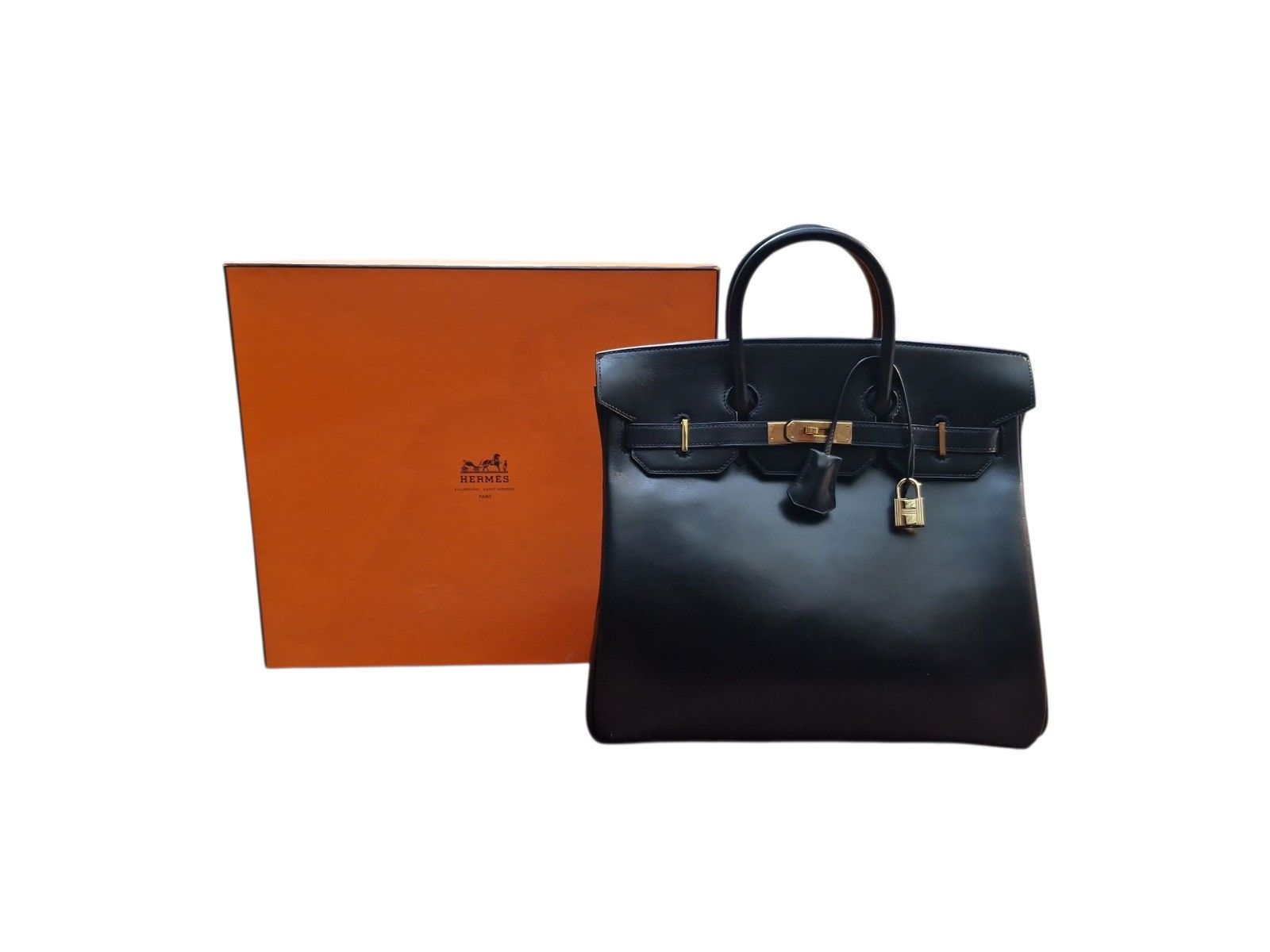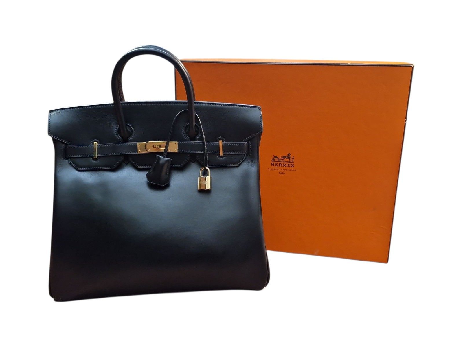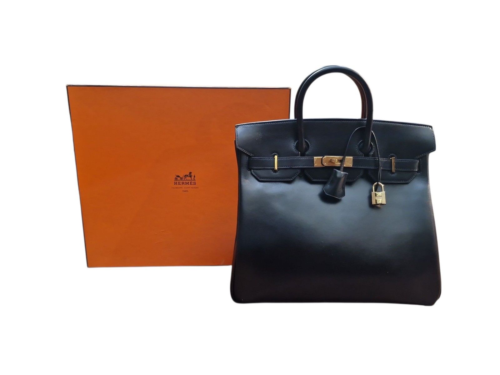 Premium HERMÈS "Birkin" 32 cm bag in black leather, gold-plated bras…