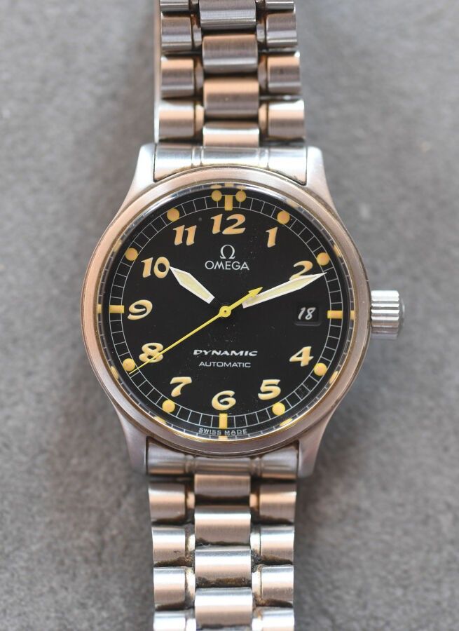 OMEGA Dynamic III Automatic ref 166.0310, stainless steel case, date at 3 o'clock, OMECA stainless steel bracelet with original OMEGA folding clasp, endlinks 870, diameter 37 mm, 21-jewel movement. NO. V8071-2892A2. Slight patina from use. In working order on the day of the examination.