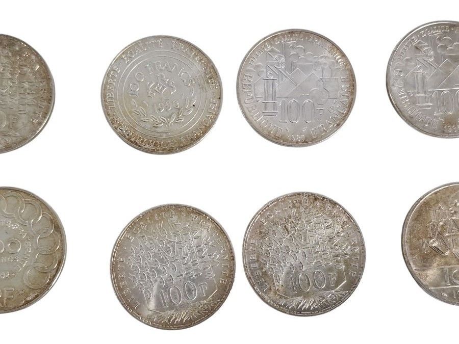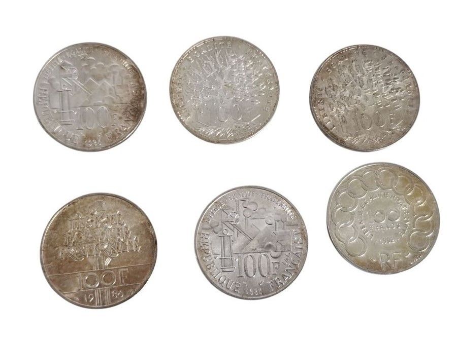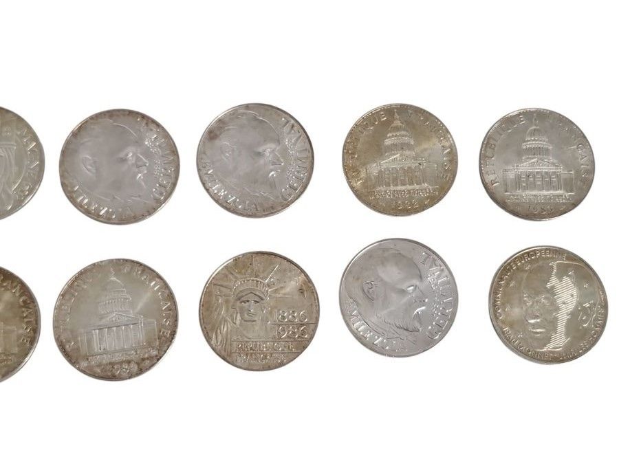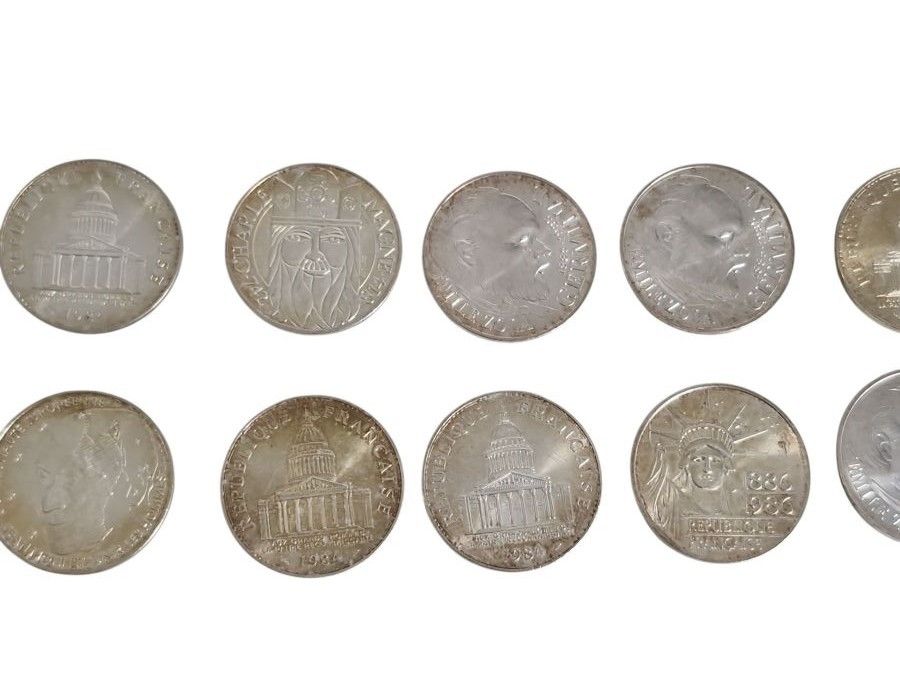 14 silver 100 FF coins type Panthéon (6) Zola (3) Liberté, Lafayette, Charlemagne