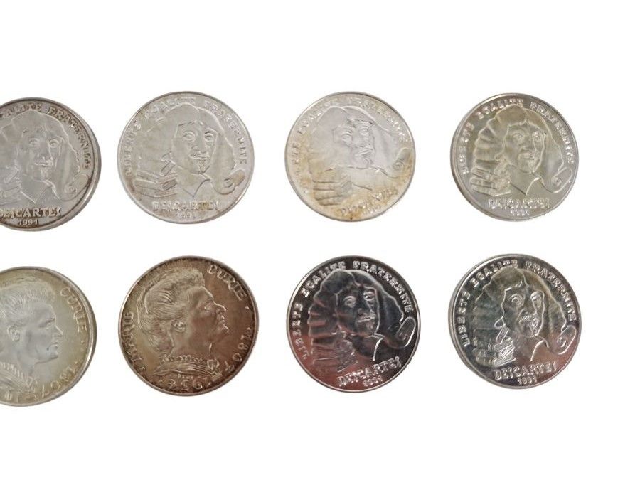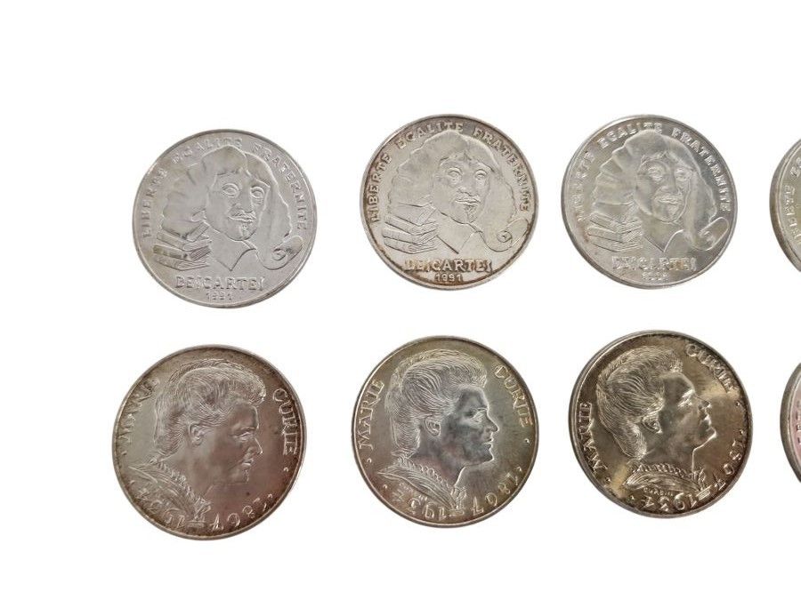 Lot of 10 silver coins 100 FF in silver Marie Curie (3) Descartes (7). Weight 150 gr