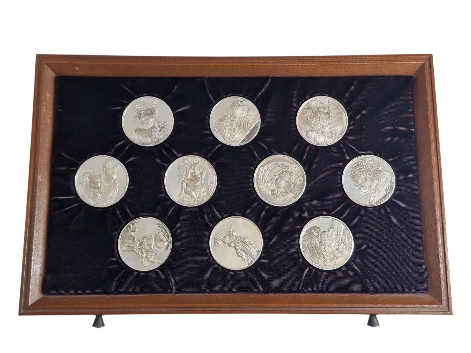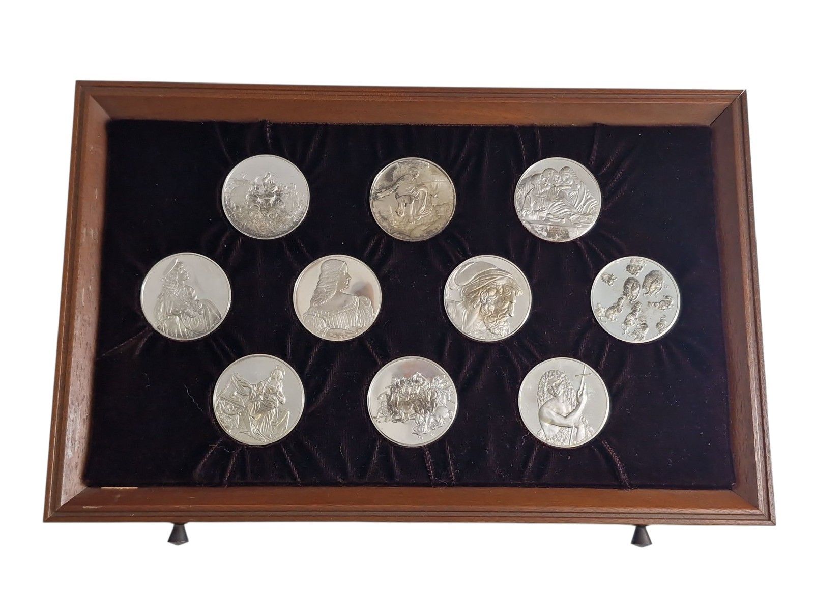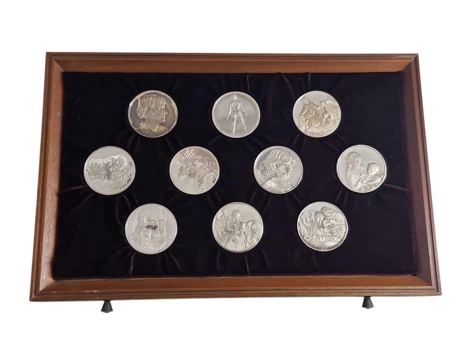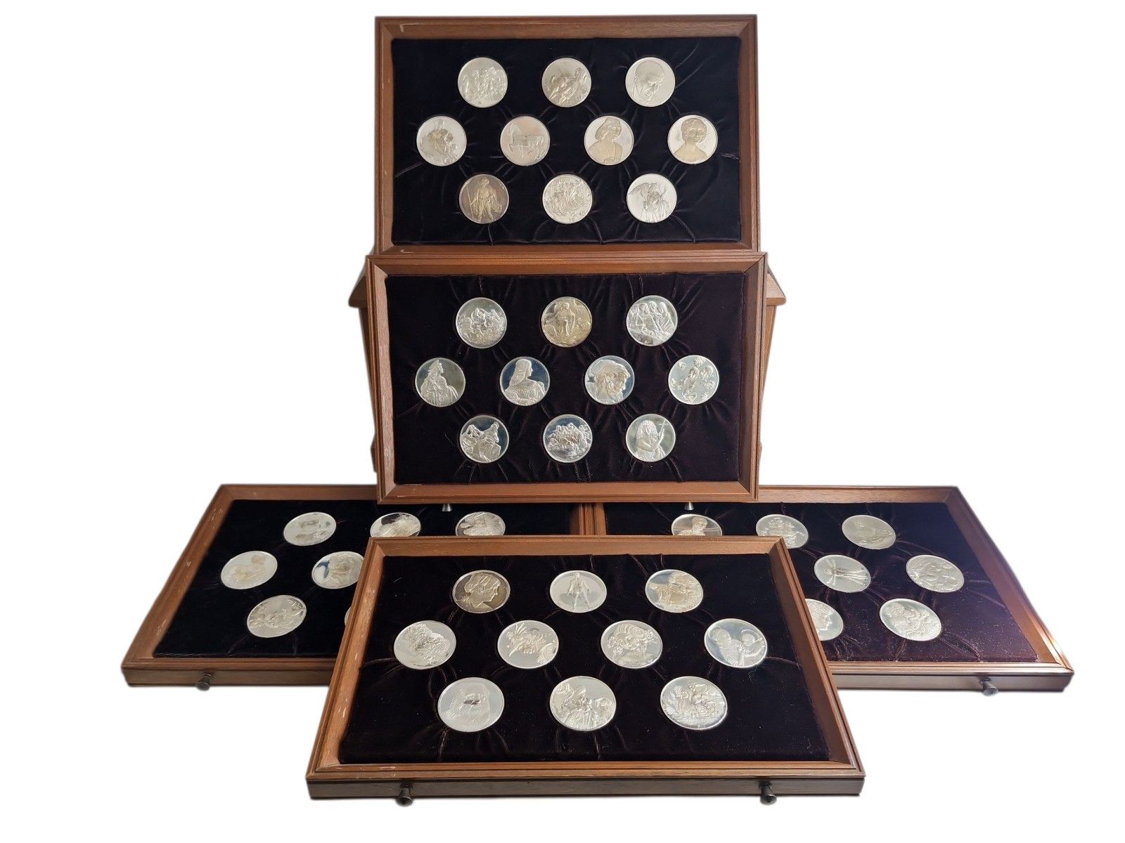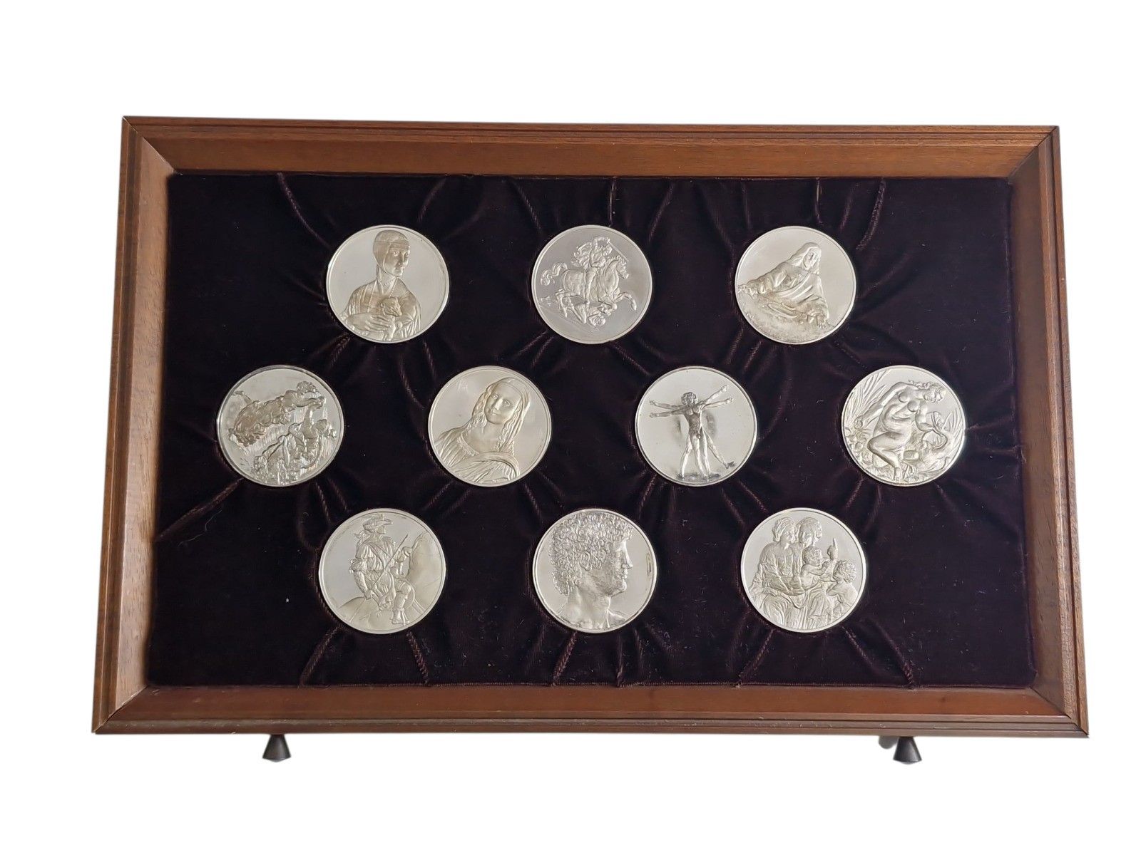 FRANKLIN Medallion box in stained wood "The genius of Leonardo da Vinci" containing 50 silver medals. Limited edition in February 1975. Approximate weight : 2500 gr