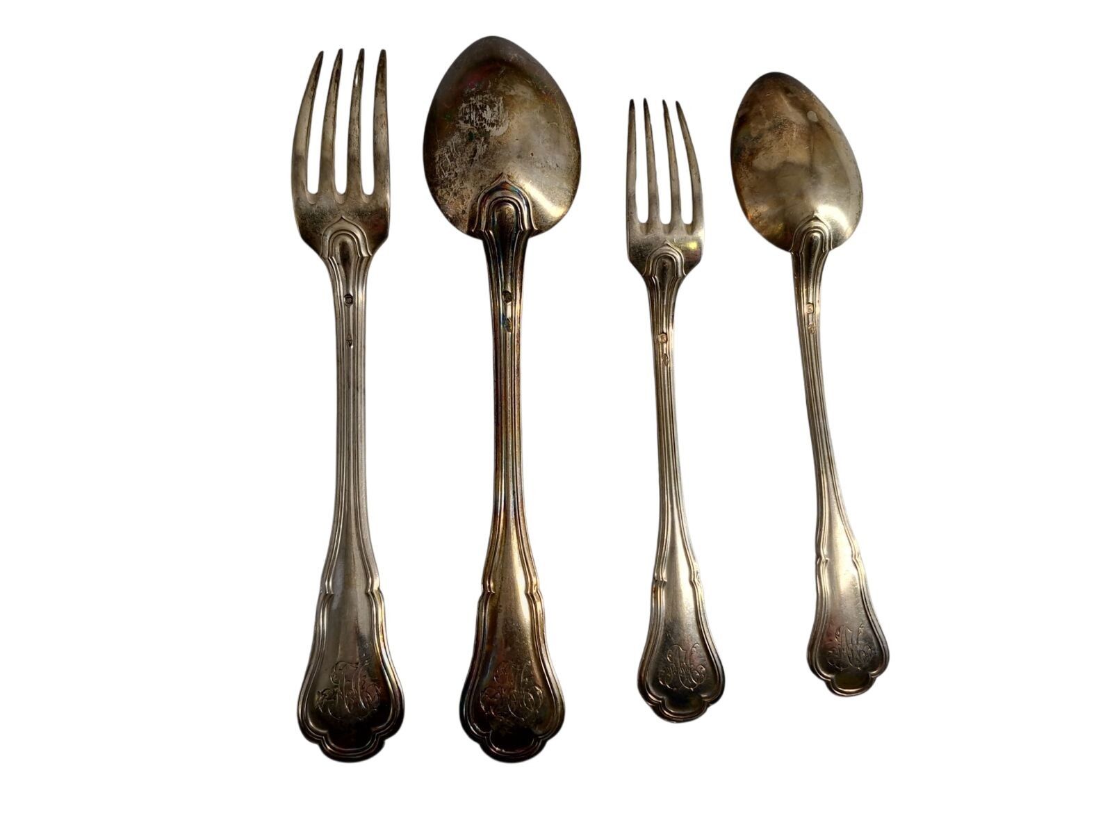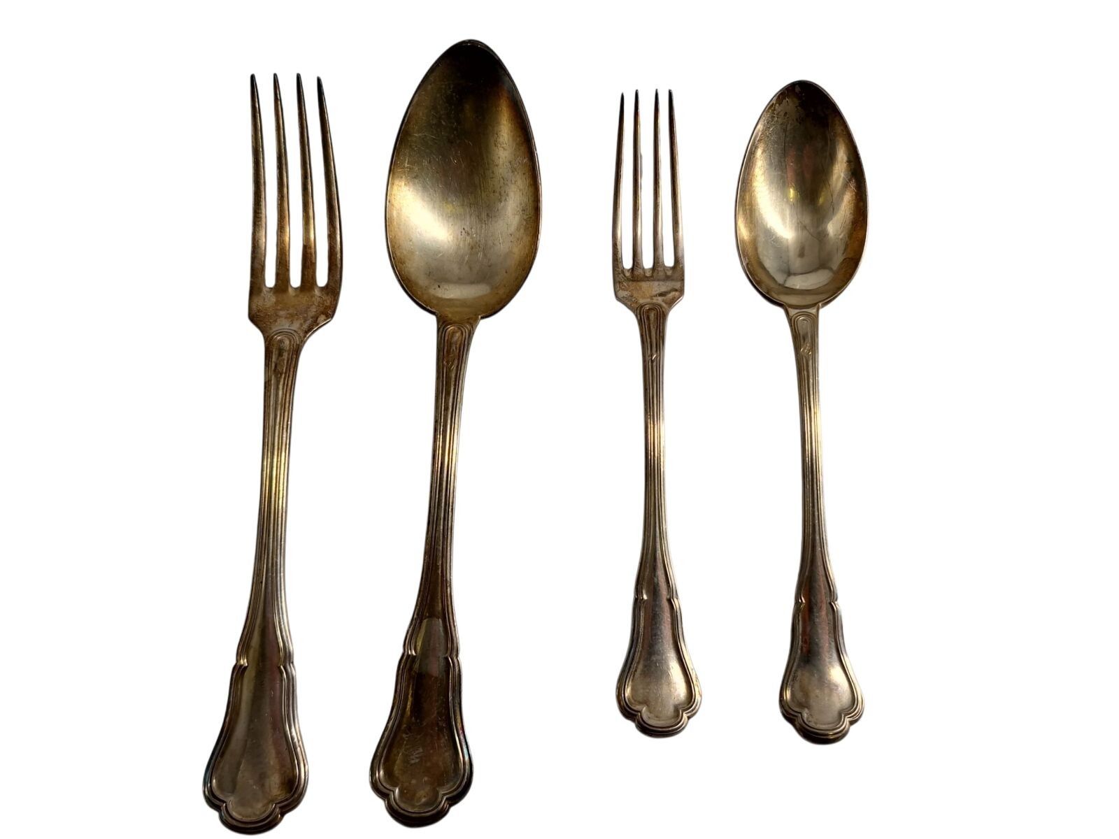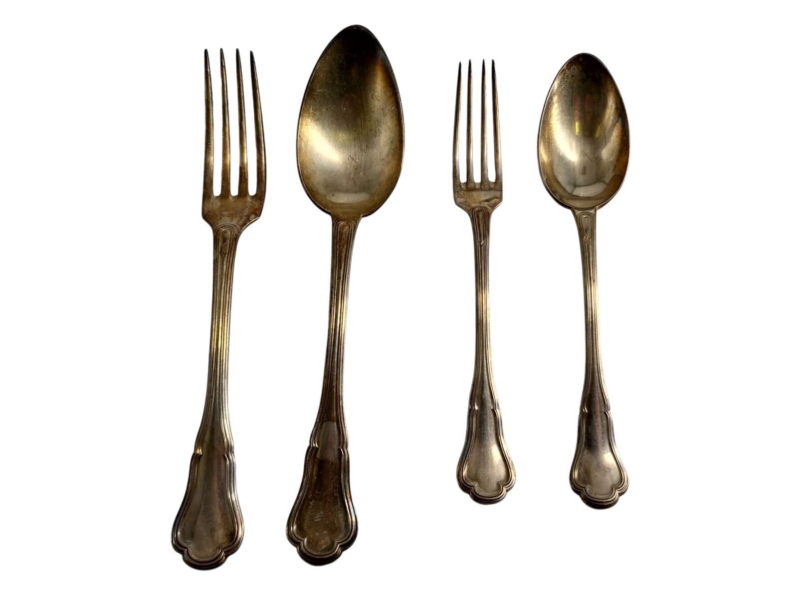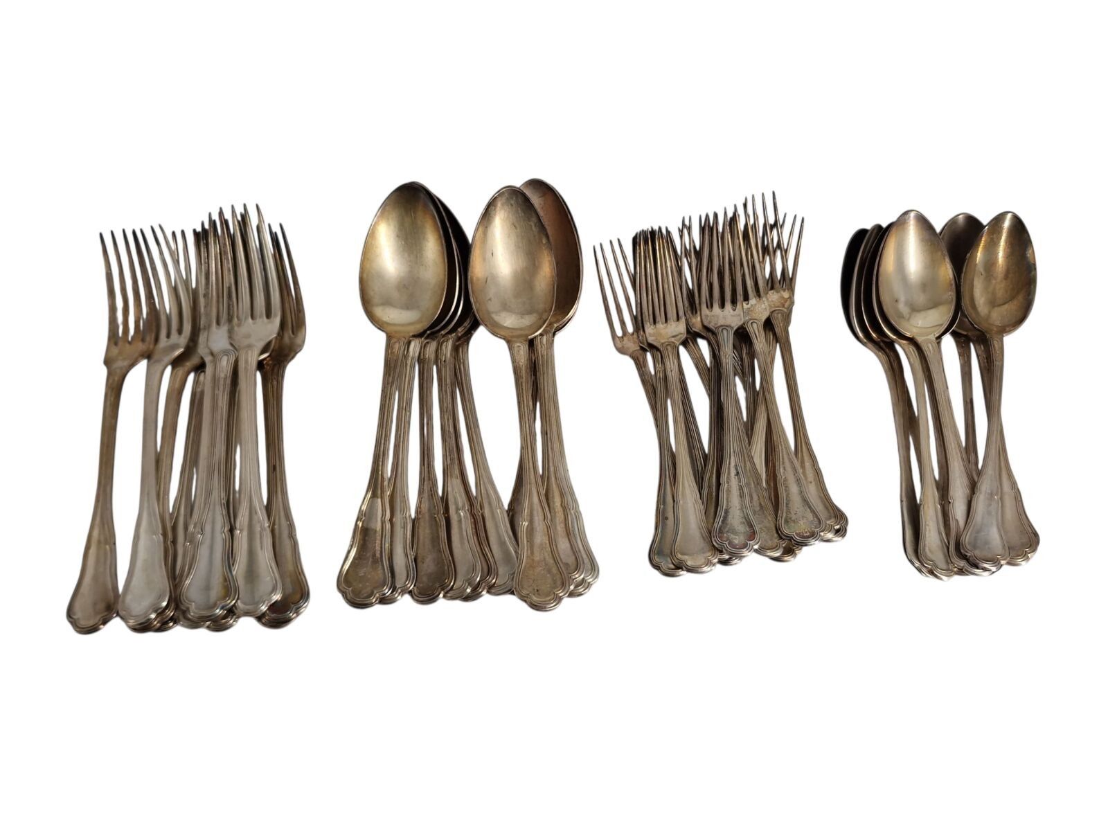Set of silver cutlery including: 10 large place settings, 11 dessert spoons and 14 dessert forks Weight: 2.850. kg
