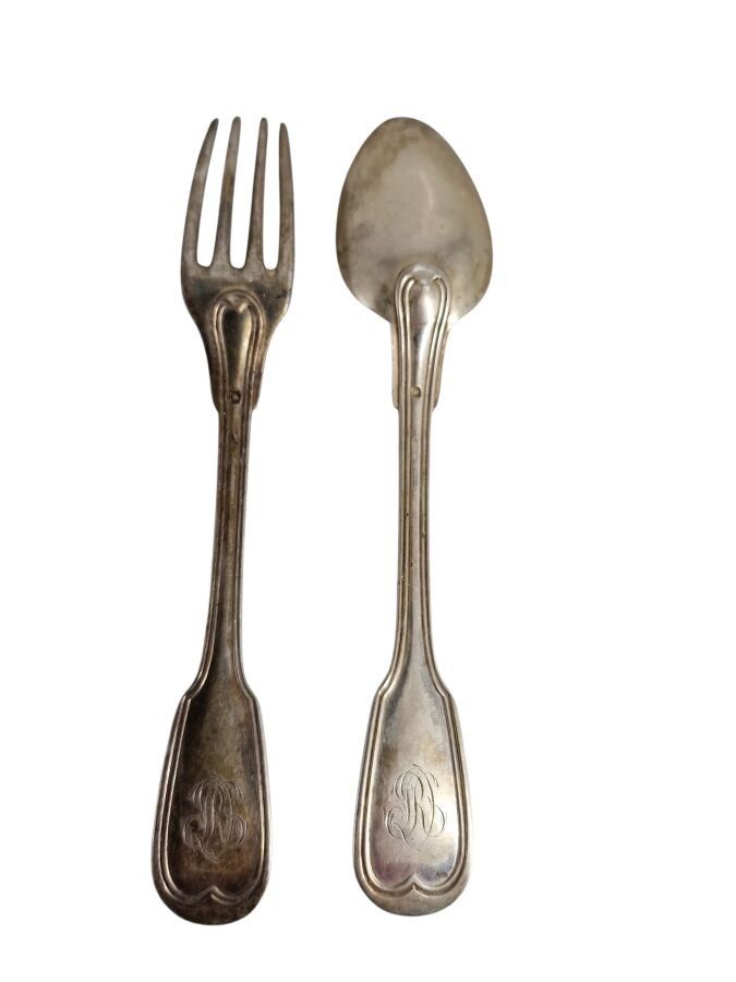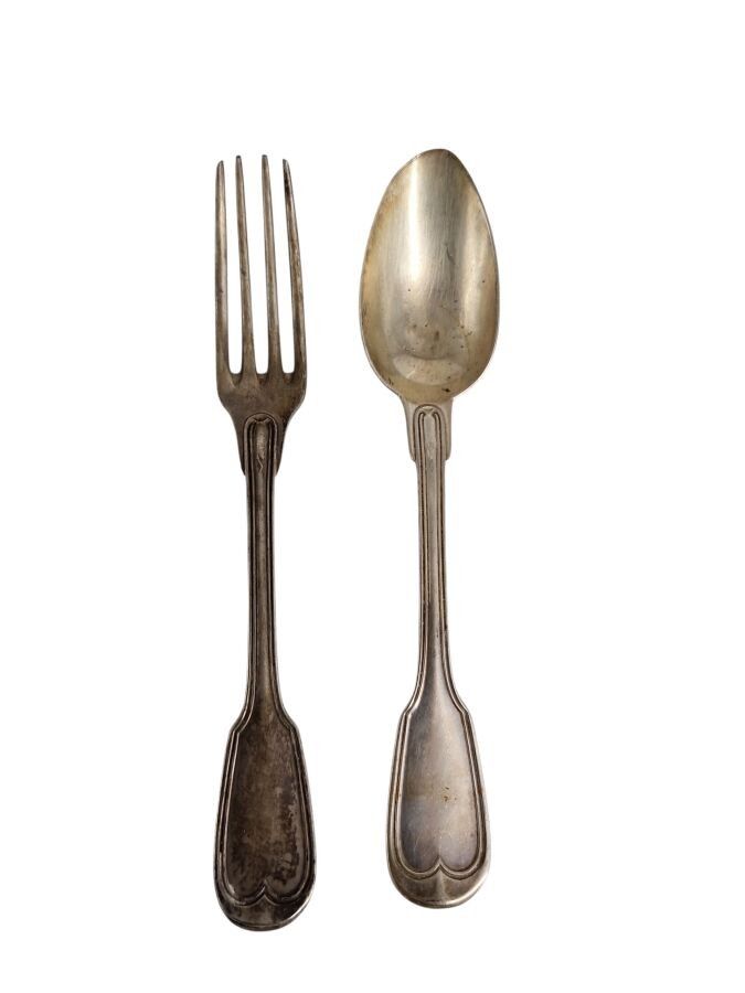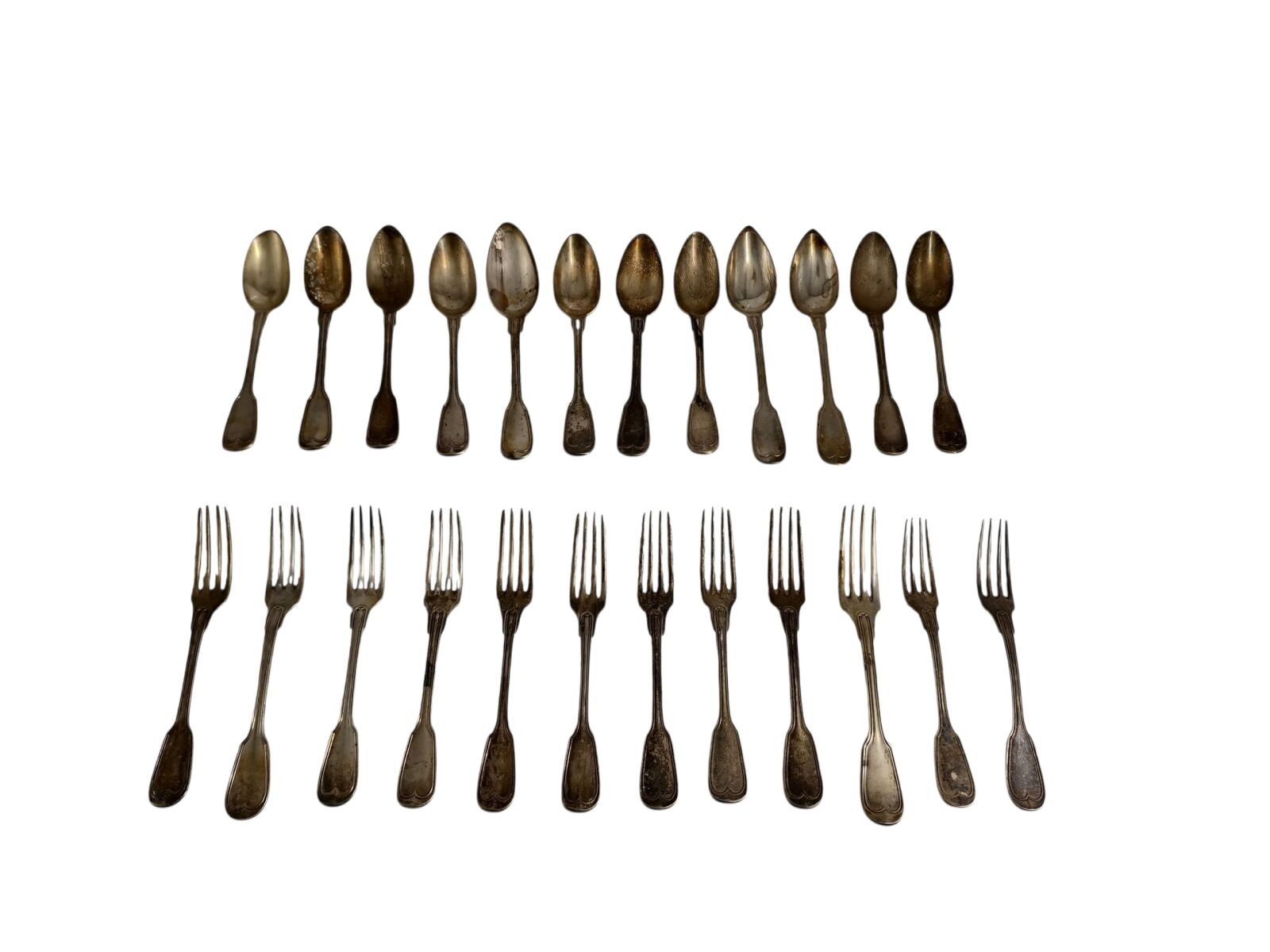 12 pieces of silver flatware, figured filets pattern. Weight: 1.695 kg (differences)