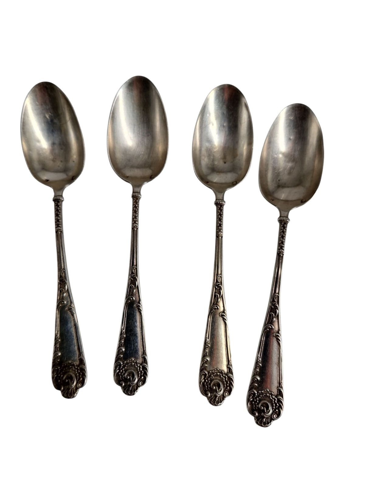 Set of 22 silver coffee and dessert spoons with filets and r…
