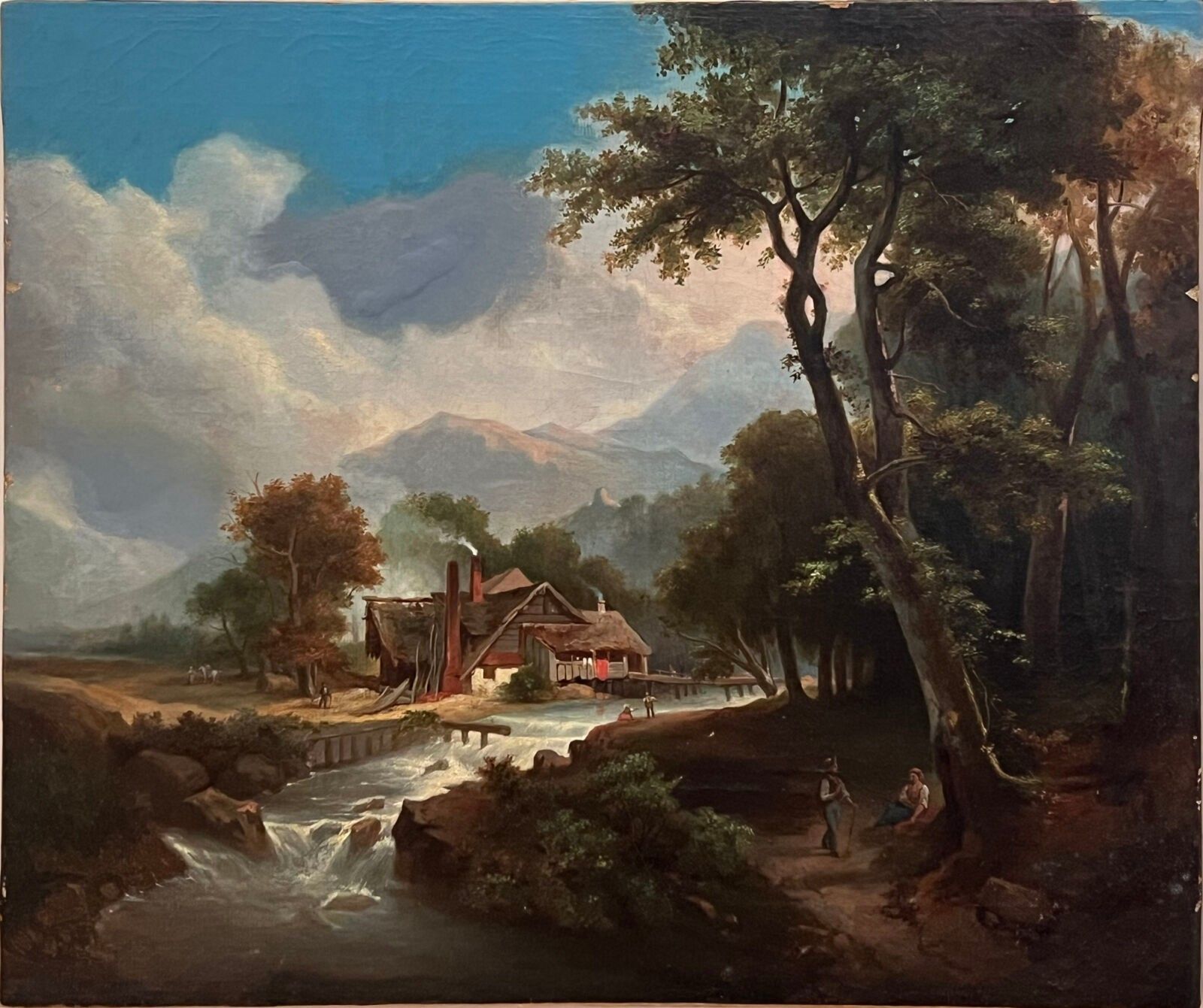 Northern school of the XVIIth century, after Hobbema "River landscape" Oil on canvas. Restorations. 54 cm x 64 cm (restorations and holes)