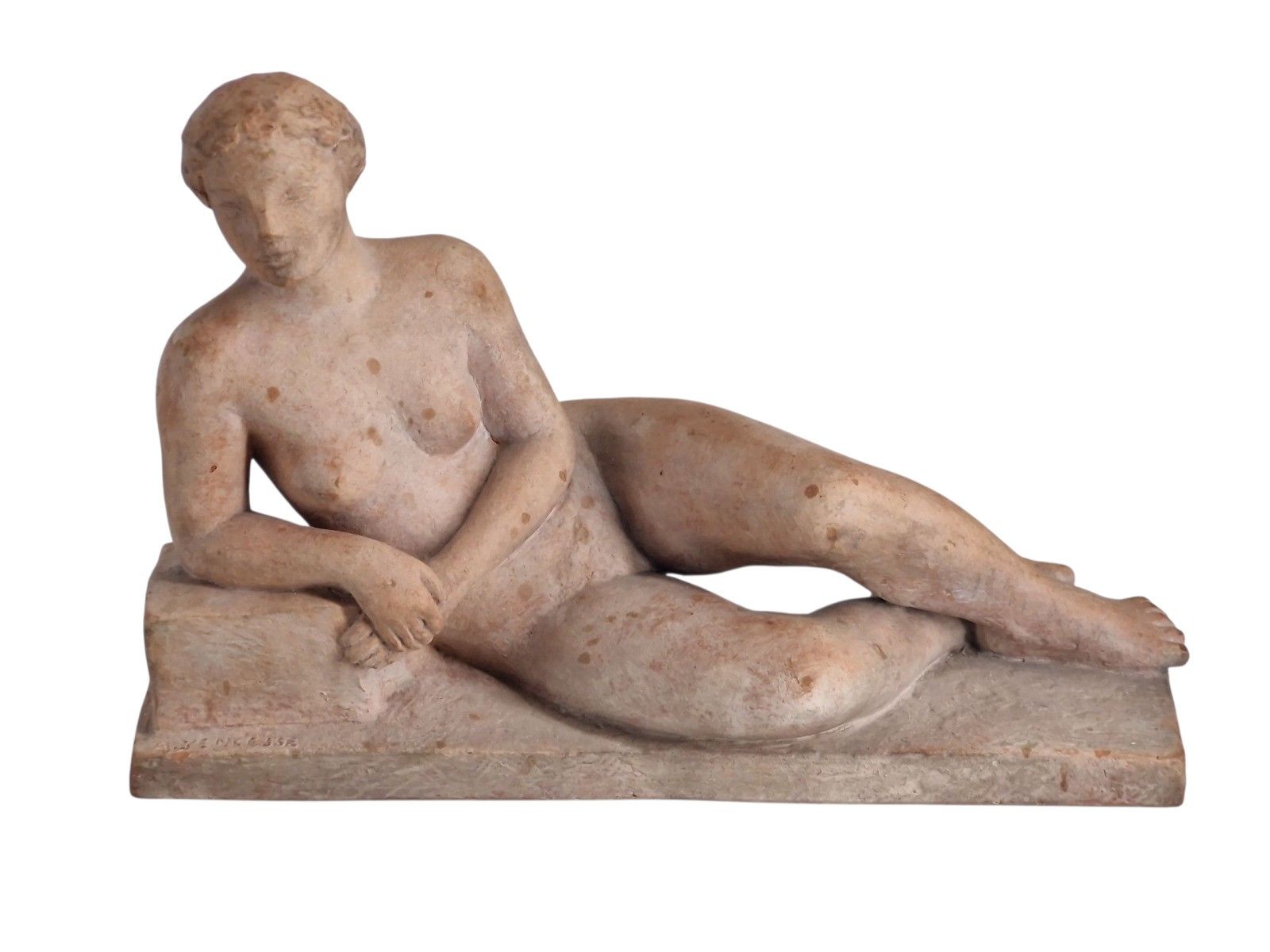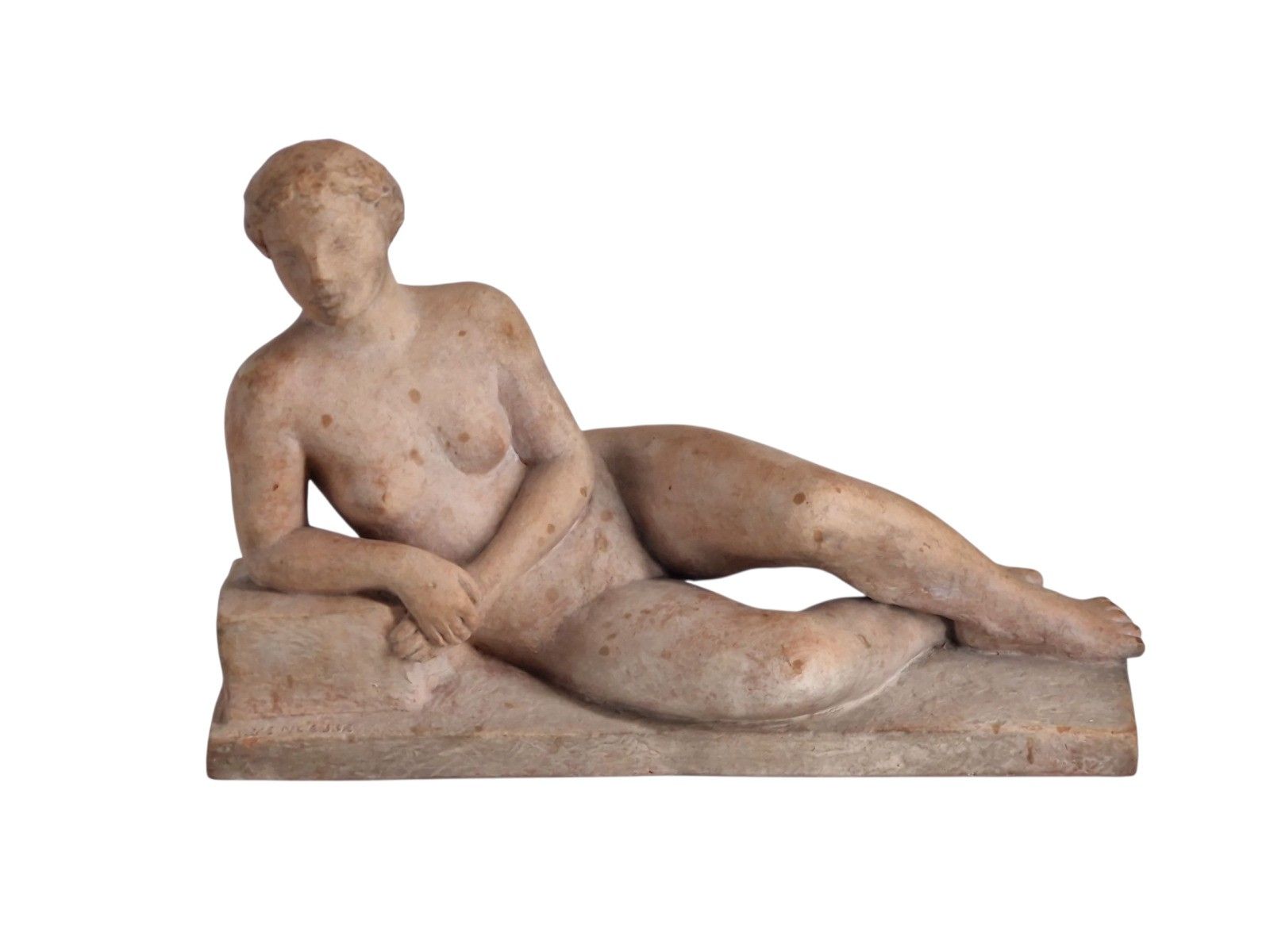 Hubert YENCESSE "Femme nue Allongée" terracotta, signed, 23 …