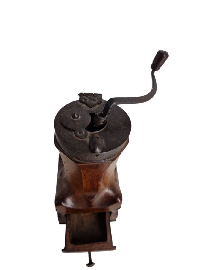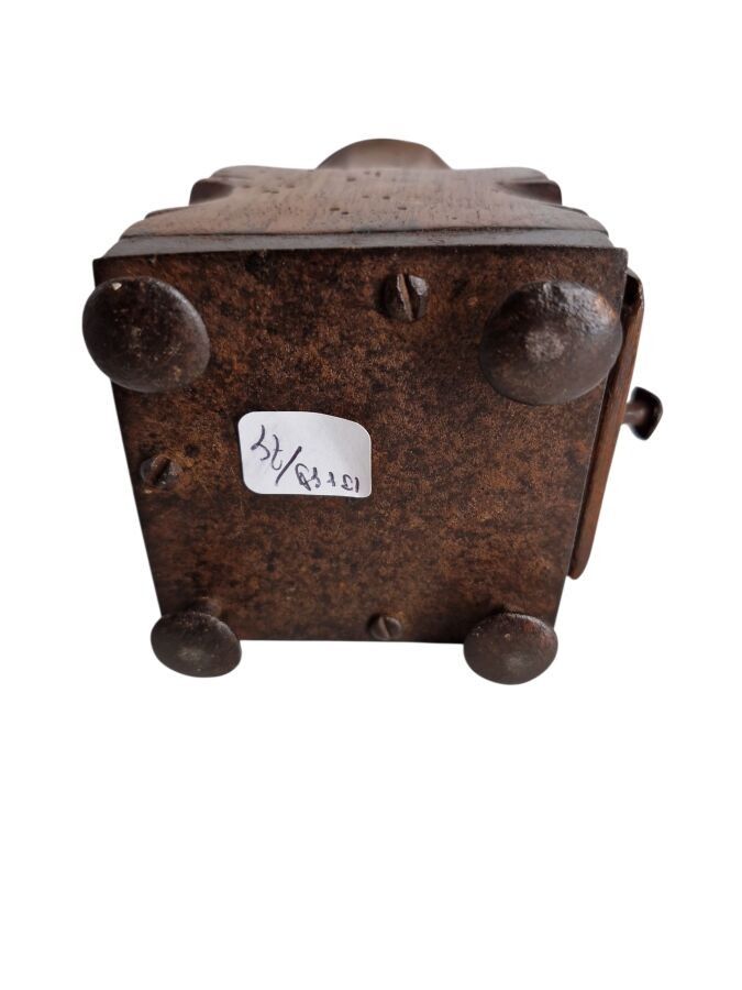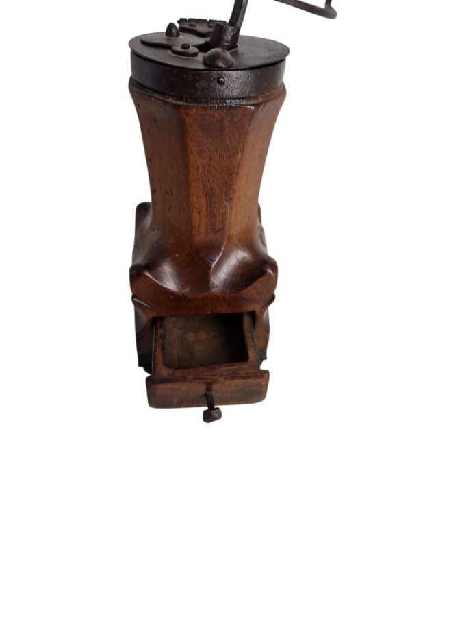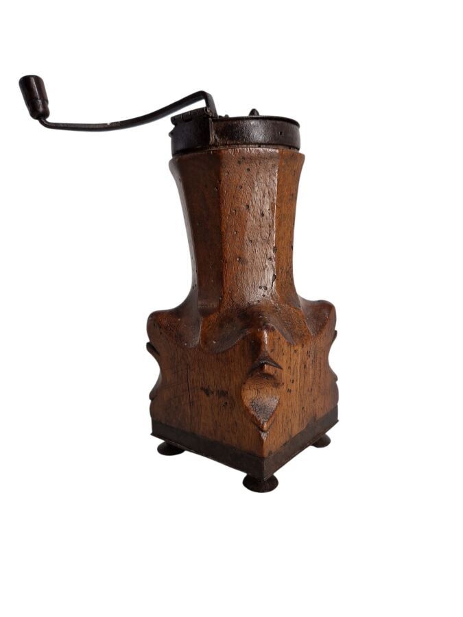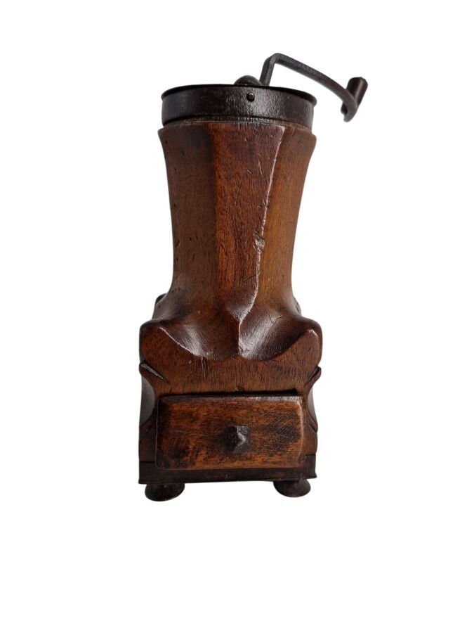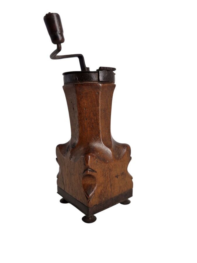 Walnut and wrought iron coffee mill. Louis XIV style. 18th century. 17 x 7.6 x 7.6 cm