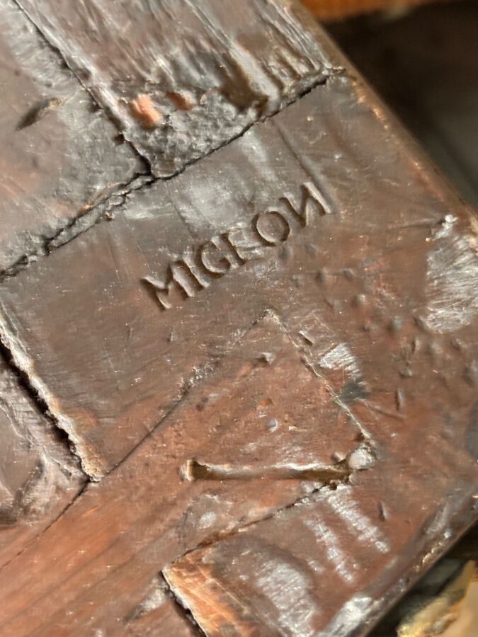 He made furniture in rosewood and amaranth veneers. Migeon's furniture is characterised by what might be called robust elegance and a pronounced taste for curves, as on our chest of drawers above, which is representative of his work. His son, a Master in 1761, continued his father's workshop (Source: Le mobilier français du XVIIIe siècle, Kjellberg).