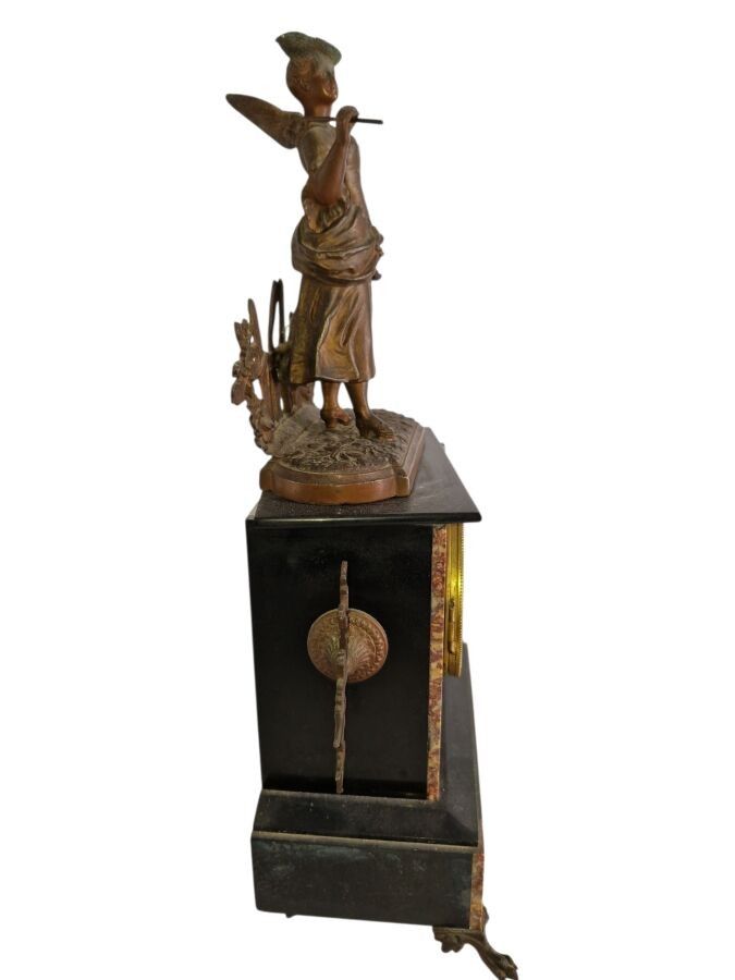 Mantelpiece with a patinated regule subject clock of a fishe…