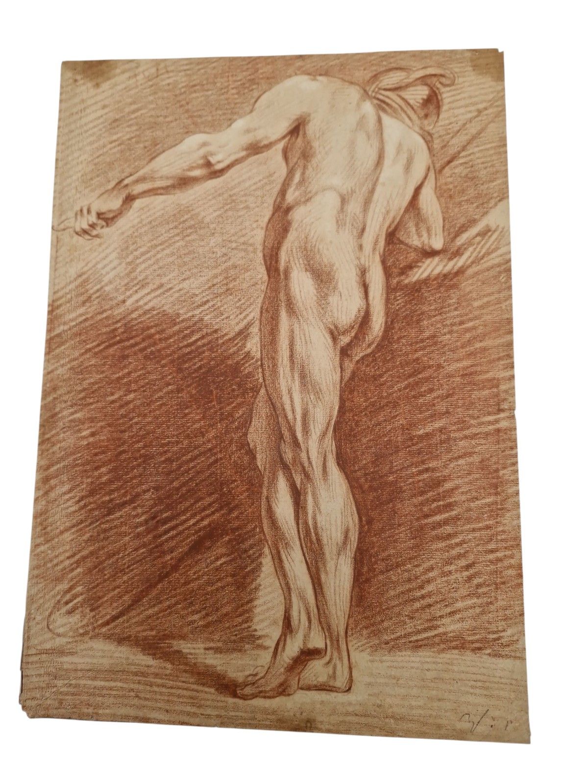 Sanguine. Watermark with the name of the papermaker (folds; small accidents in the margins).
