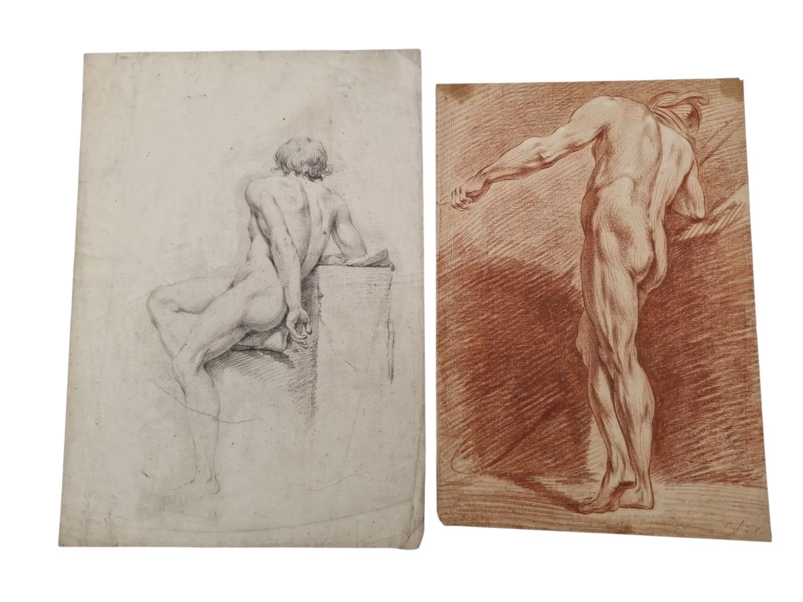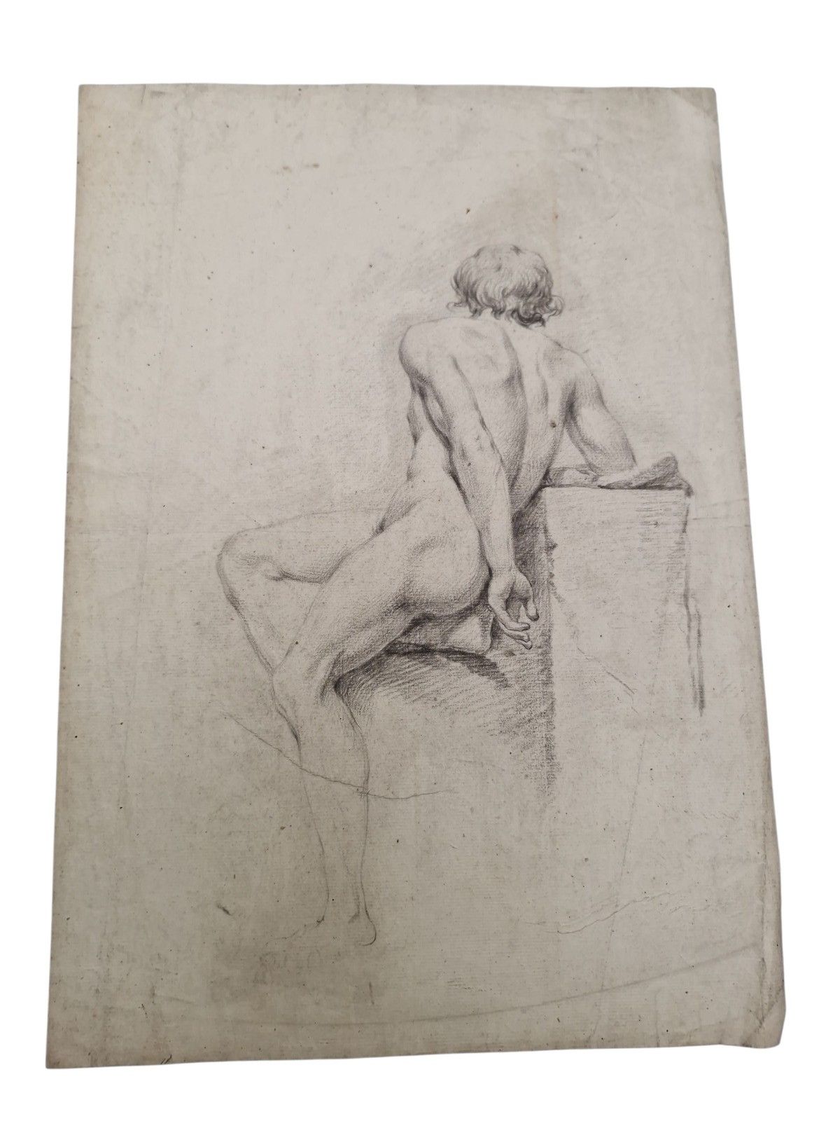 2 - Academy of a seated man, three-quarter back.