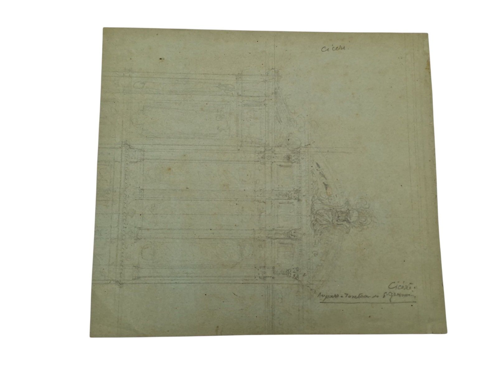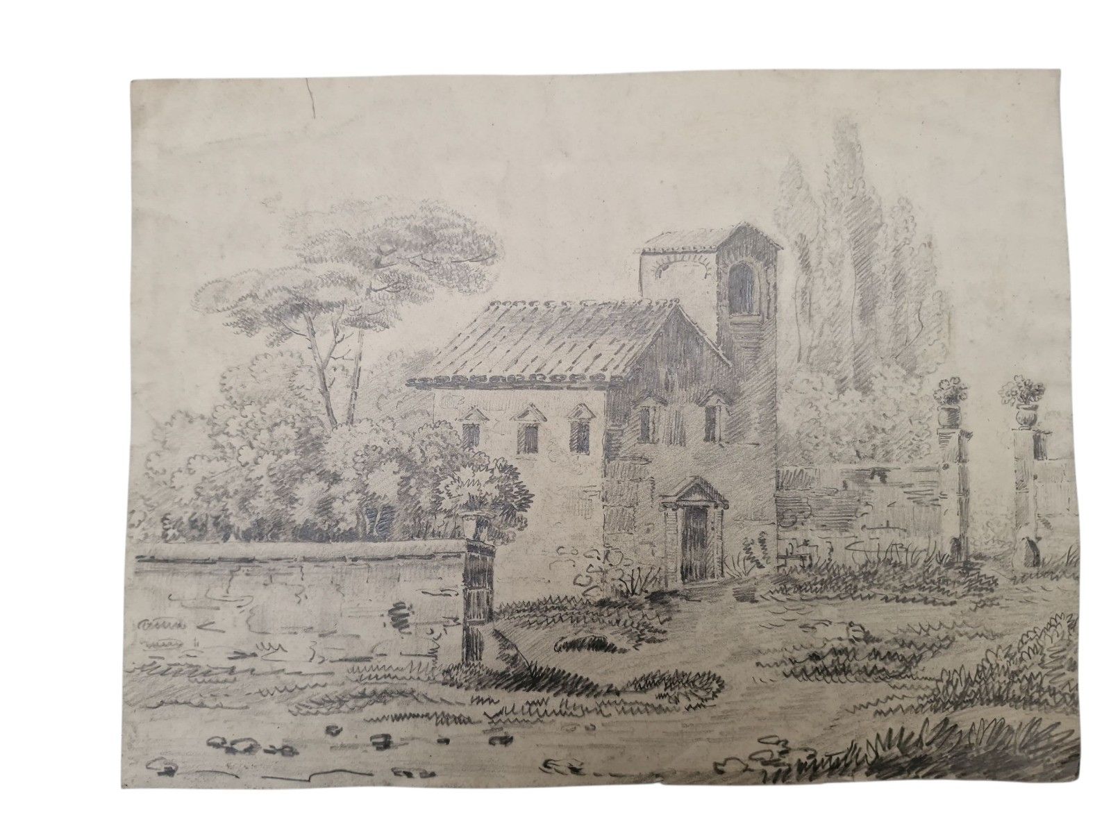 (19 x 21 cm) and on the reverse Ciceri. As well as a study of a chapel in the countryside in black pencil (Small accident in the upper left margin; folds and slight foxing; 22 x 19 cm). Expert. Patrice DUBOIS