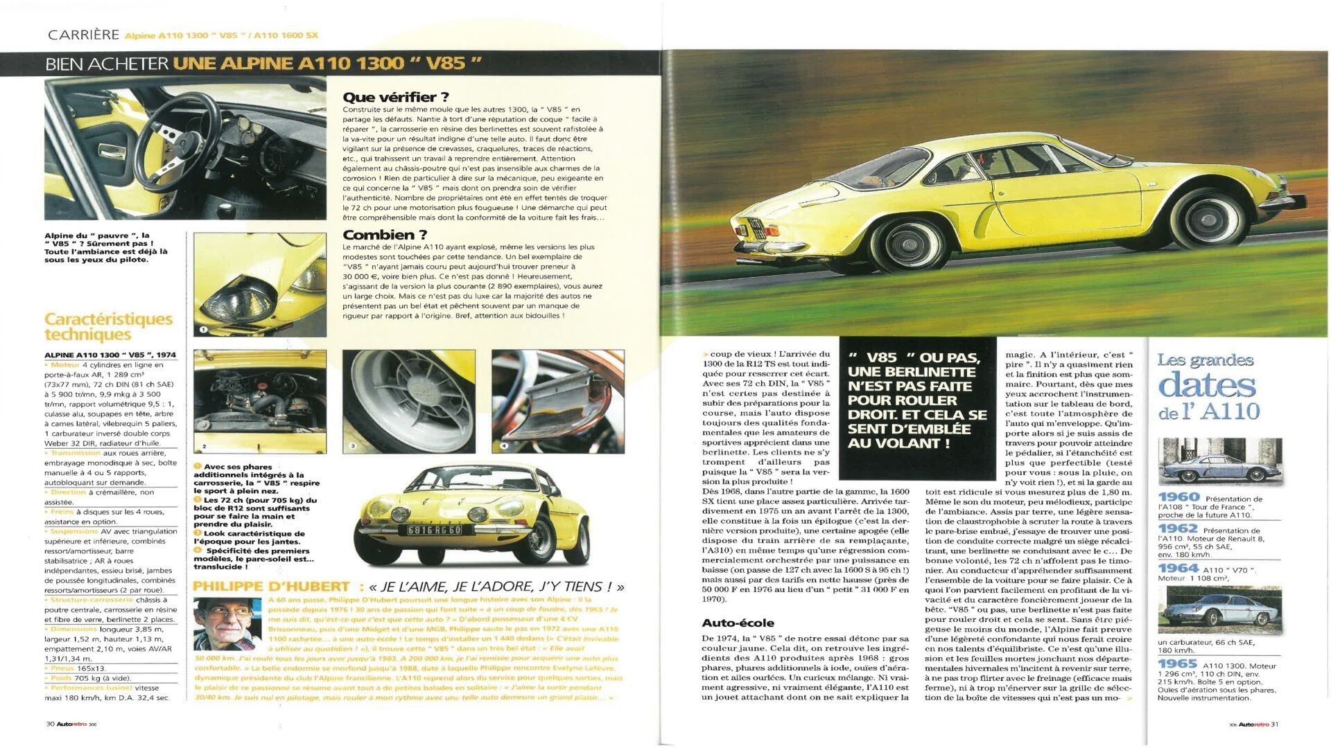 ALPINE A 110 1300 V85 RENAULT - Type: Passenger car - Body: …