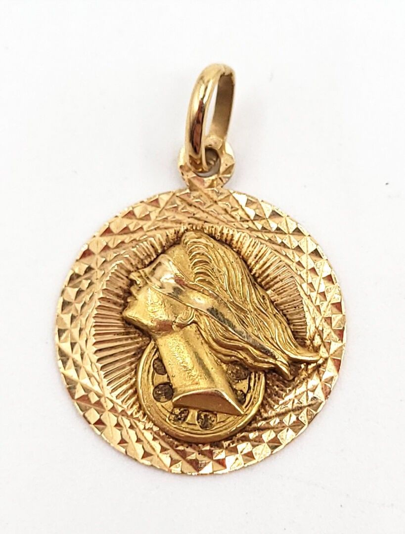 MEDAL in yellow gold 750‰ decorated with a woman with blindfolded eyes.