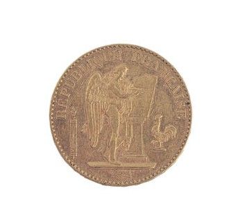 A 20 franc gold 900‰ coin bearing the effigy of the Genie dated 1895.