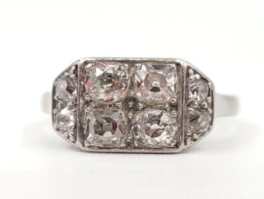 Art Deco style ring in white gold 750‰ and platinum 850‰ adorned with 4 diamonds (approx. 0.10 carats)
