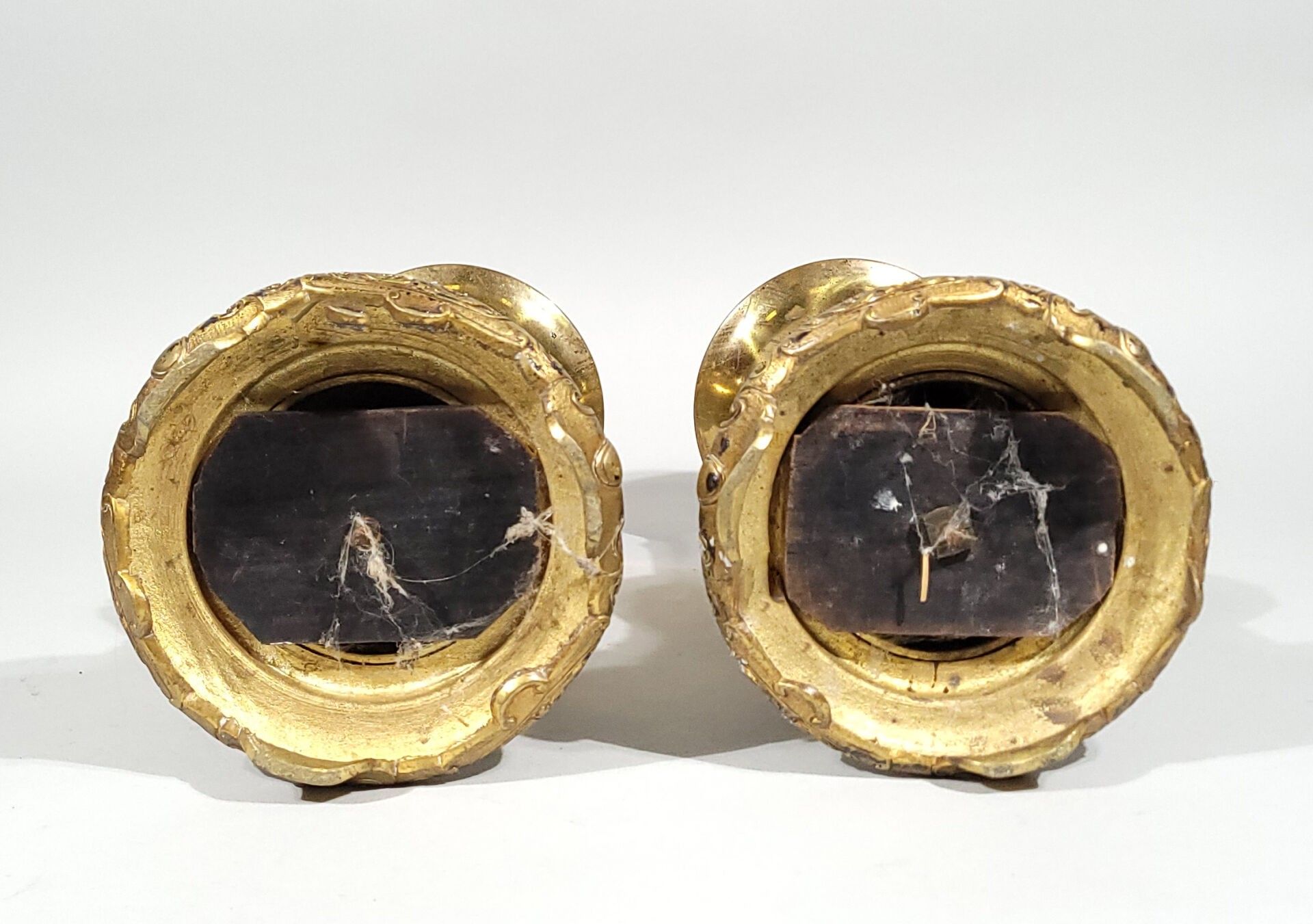 Pair of ormolu horn-shaped vases or torches decorated with d…