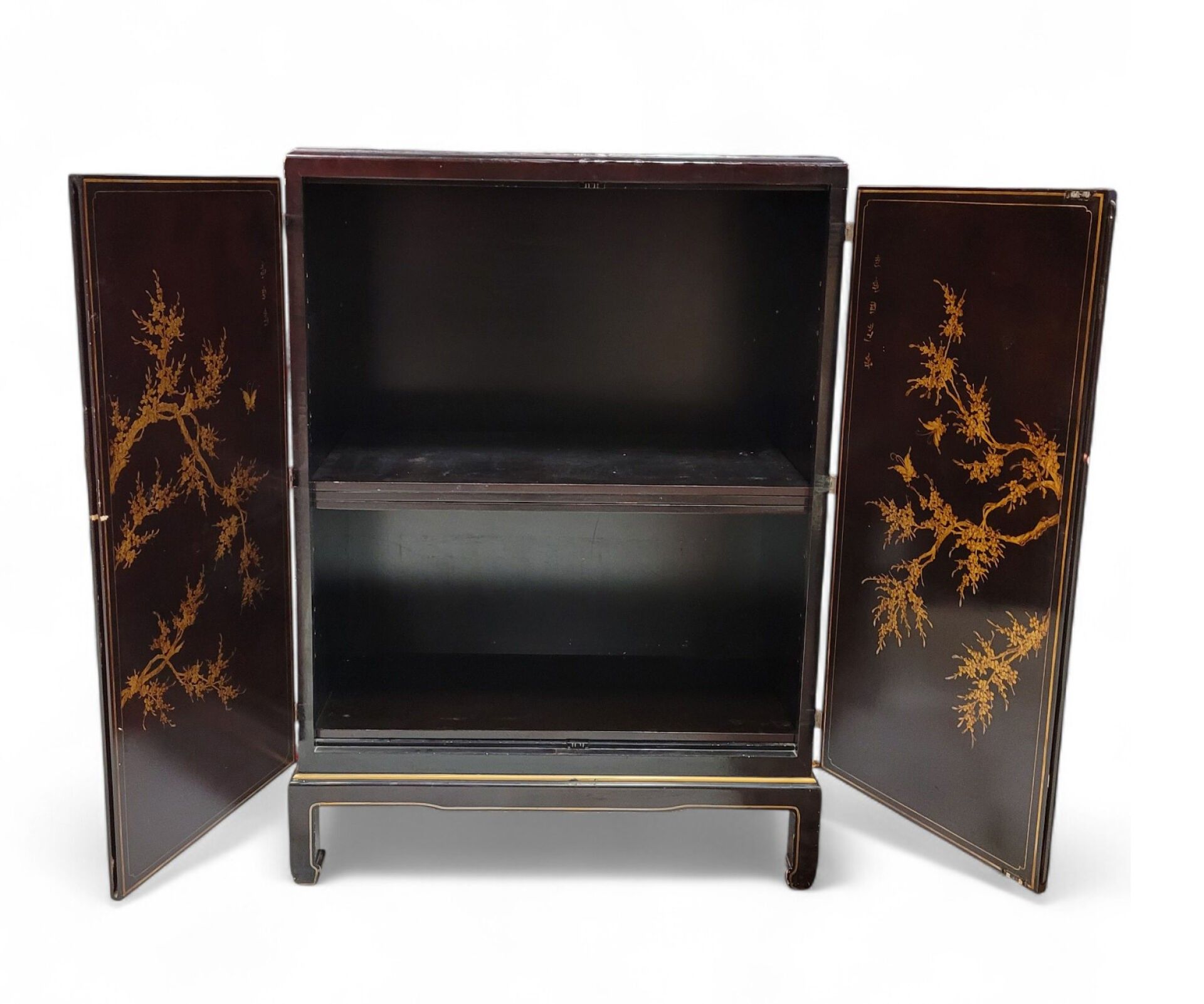 A black and gold lacquered wooden ARMOIRE decorated with ani…