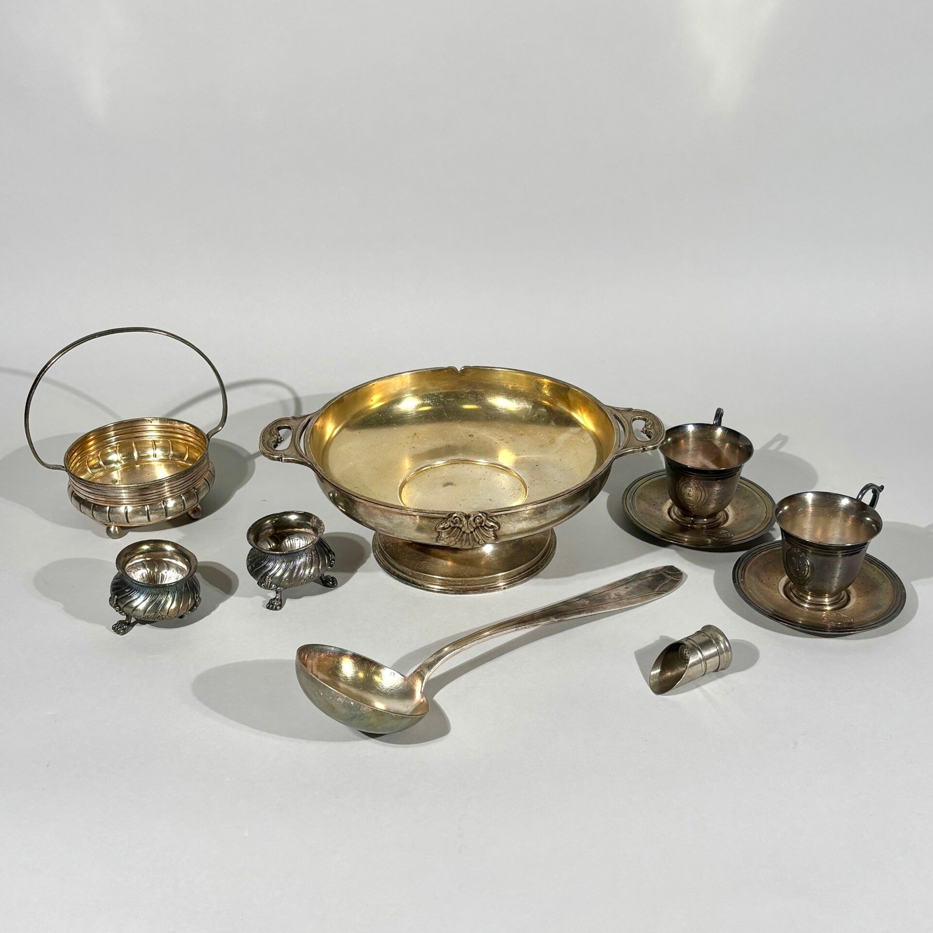 - 2 dishes with lion paw feet and twisted gadrooned bodies (one foot missing),