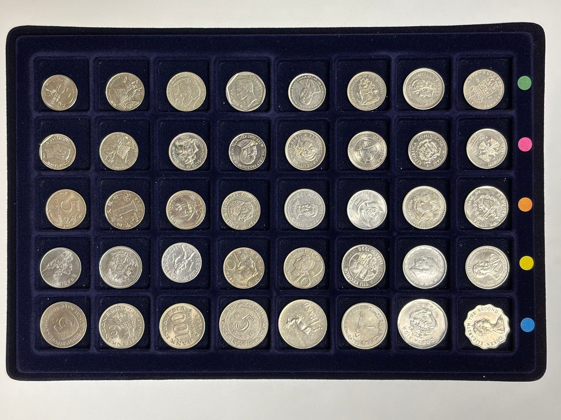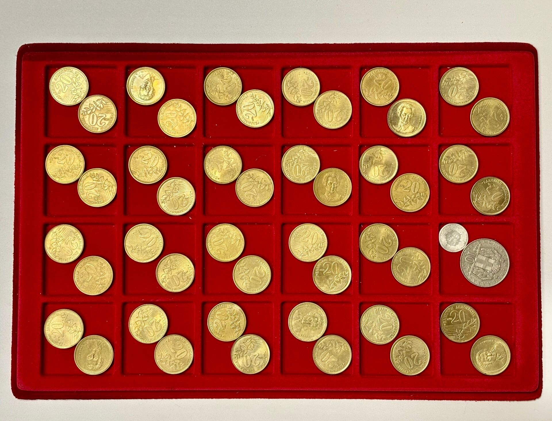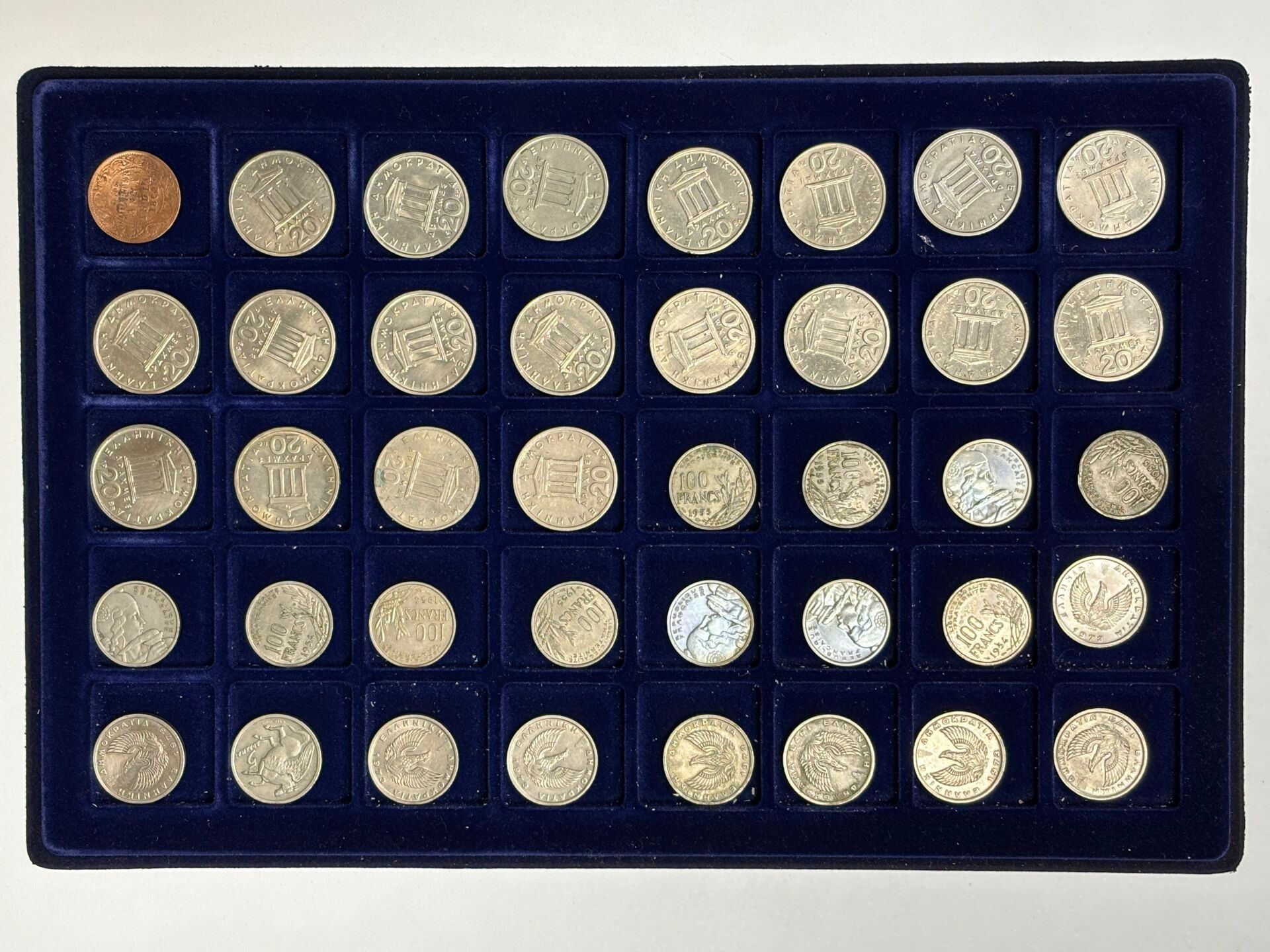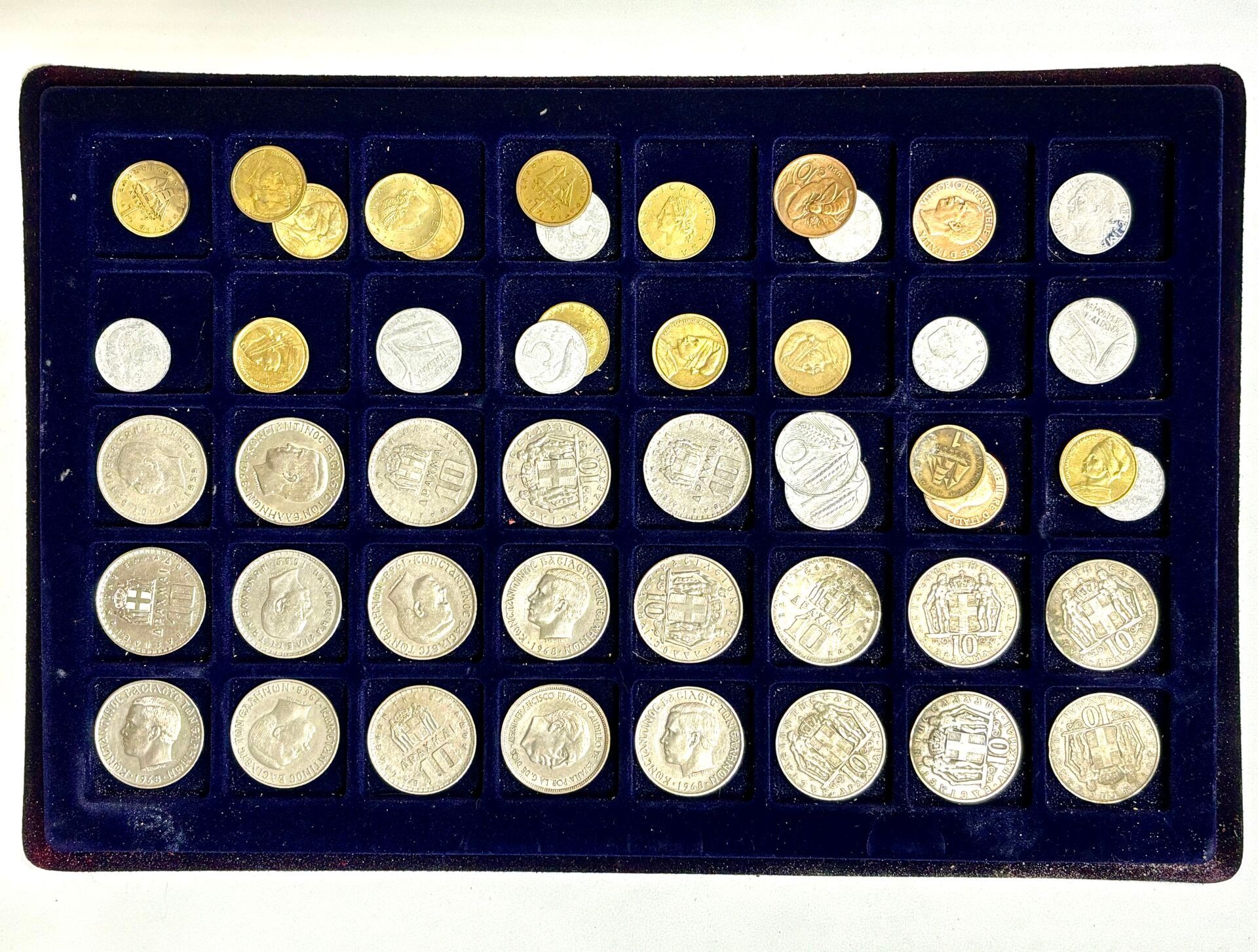 LOT OF FRENCH AND FOREIGN CURRENCIES in three cases including coins from France, Luxembourg, Australia, Brazil, Indonesia, Cuba, Hong Kong, United Arab Emirates and Greece.